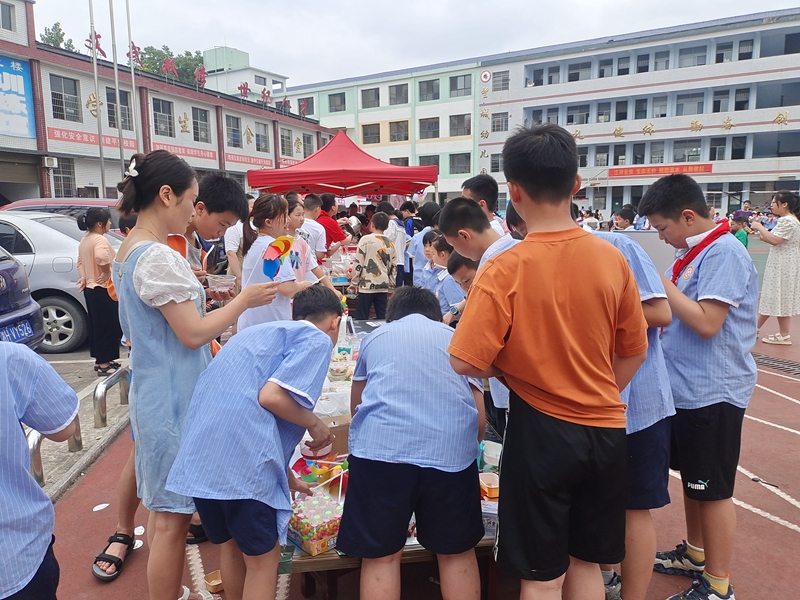 本网讯 6月1日,梅城镇望城完小庆六一“童心润爱心 小鬼来当家”爱心义卖活动在该校操场举行。 同学们摇身一变,“小小售货员”“小小收银员”立刻上线,每个爱心摊位前人头攒动,孩子们热情高涨,爱心满满,准备书籍、玩具、手工串珠等,还有各式各样的“销售策略”。本次义卖活动得到家长们的大力支持,他们慷慨赞助义卖品,有的一早精心制作擂茶、辣萝卜条、粽子等特色食品,有的在现场维持秩序,有的帮忙叫卖,有的化身爱心顾客,奉献自己的一片爱心,家长们的加入不仅壮大了义卖的力量,这也是该校坚持家校沟通,构建教育合力的又一生动体现。 据初步统计,此次活动共得义款10560.50元,将全部用于资助家庭经济困难的学生。