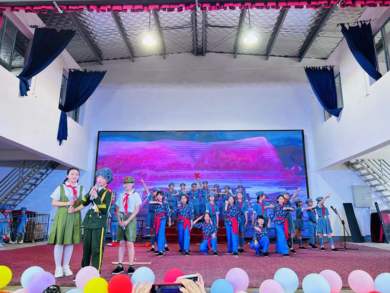 本网讯 6月1日,梅城镇东华完小开展“八一学子 非‘童’凡响”庆“六一”文艺汇演暨课后服务成果汇报活动。 活动现场,校长王团向广大少年儿童致以祝福,向社会各界来宾致欢迎词。18个班级与课后服务艺体兴趣班展示内容丰富、形式多样、创意新颖的节目,在《卢沟谣》合唱里品读历史;在《小萝卜头》情景里扛起担当;在《茉莉花》悠扬的旋律中撑一把油纸伞悠然起舞;在《勇气大爆发》舞蹈里绽放童真;挥洒汗水玩转集体篮球操、花式体能训练;用华尔兹向多彩童年进发;在快板声中体会中华经典之底蕴;在沉静的夜色下奏响葫芦丝以诉衷肠…… 教导主任罗玉练在活动总结中指出:本次活动组织严谨有序、展演过程质量高,这既是全校学生展示自我的平台,也是对学校课后服务艺体课程的一次检阅。