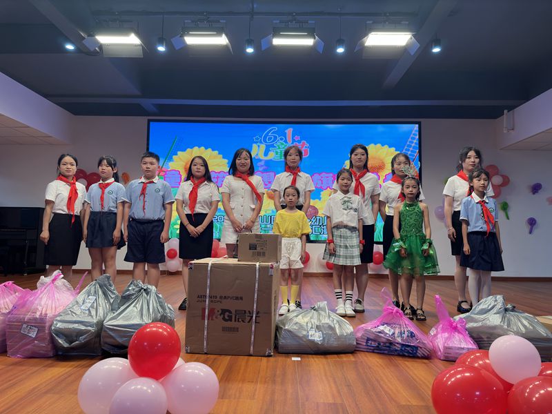 本网讯 6月1日上午,东坪镇青山园完小彩旗飘扬,热闹非凡,共同庆祝第73个“六一”国际儿童节。 火红的队旗迎风飘扬,该校40名学生光荣加入中国少年先锋队,共同开启人生新篇章。校长刘跃兵作热情洋溢的讲话,青山园村支书贺宁波为孩子们送来祝福。安化教育服装厂厂长谌利勇、安化云创意广告传媒有限公司经理陈妍等22名爱心人士为学校捐赠助学基金、安化县永信恒昌工程管理有限公司罗建梅女士为每个孩子赠送一套精美的学习用品。 该校全体师生以及幼儿园的小朋友们浓妆艳服,纷纷登台表演节目。17个高质量的节目形式多样、各具特色,孩子们尽情地唱啊,跳啊,唱出心中美好,跳出阳光健康,获得一阵又一阵雷鸣般的掌声。其中二年级课本剧《揠苗助长》角色表演入情入境;幼儿园大班孩子串烧舞蹈《精武门》生动活泼、神采飞扬;六年级诗歌吟诵《少年中国说》气势磅礴、热血沸腾、尽显少年风采;女教师舞蹈《日不落》节奏欢快、动感十足;男教师课桌舞《早安,隆回》精神饱满、夺人眼球。