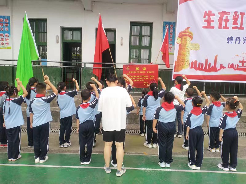 鲜艳的五星红旗在庄严的国歌声中冉冉升起,“六·一”庆祝活动拉开帷幕。在“红领巾,我为你自豪”入队仪式上,20名少年儿童光荣加入中国少年先锋队,十余名优秀队员受到表彰。