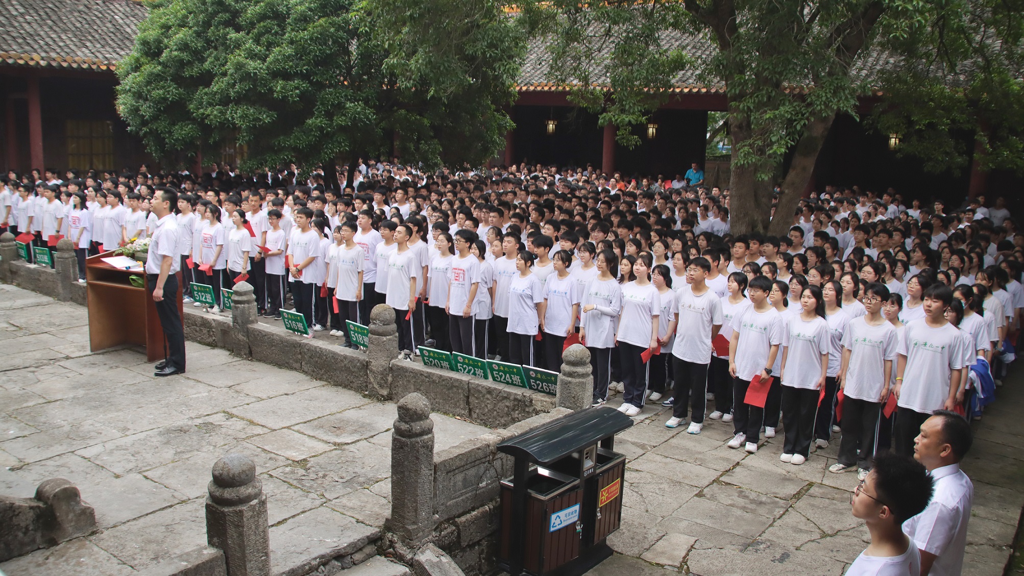 本网讯 5月30日,2023届“青春绽放 筑梦起航”高三毕业典礼暨拜孔仪式在文庙大成殿举行,全体行政人员、高三全体师生参加活动。 活动在庄严的国歌校歌声中拉开序幕。学生代表511班肖宇杰、520班陈燕为孔子塑像进献鲜花。学校党委书记、校长聂可相为高三学子颁发毕业证书,与各班班长逐一握手,祝贺全体同学顺利完成高中学业,并预祝大家金榜题名。 聂可相作题为《心怀使命绽青春 踔厉奋发再启程》的主题演讲。深情寄语高三学子,要在新时代的浪潮中以赤子之心勇担使命,与祖国同呼吸共命运,牢记追求卓越与永不言弃的一中精神,用“公、勇、诚、朴”校训去铺展生命的底色。嘱托高三学子,人生如海,要始终心怀热爱,满怀热血,勇往直前,字字句句中都承载着对高三学子的殷切期望。 高三教师代表、教务办公室副主任、高三年级负责人孙三荣发言。他动情回忆三年来师生相处的点滴,希望同学们能牢记一中教诲,坚守信仰,扬帆远航。高考在即,他用“信心、智慧、博爱”寄语高三学子,预祝同学们在高考中再创佳绩。 学生代表511班李佳依作《从容迎高考 坦荡向未来》主题发言。她以《论语》经典为纲,号召同学们要充满自信,放下焦虑,保持轻松乐观,坦然迎接高考。在最后紧要关头,更要锲而不舍,砥砺前行,怀揣从容与勇气,走向灿烂的未来。