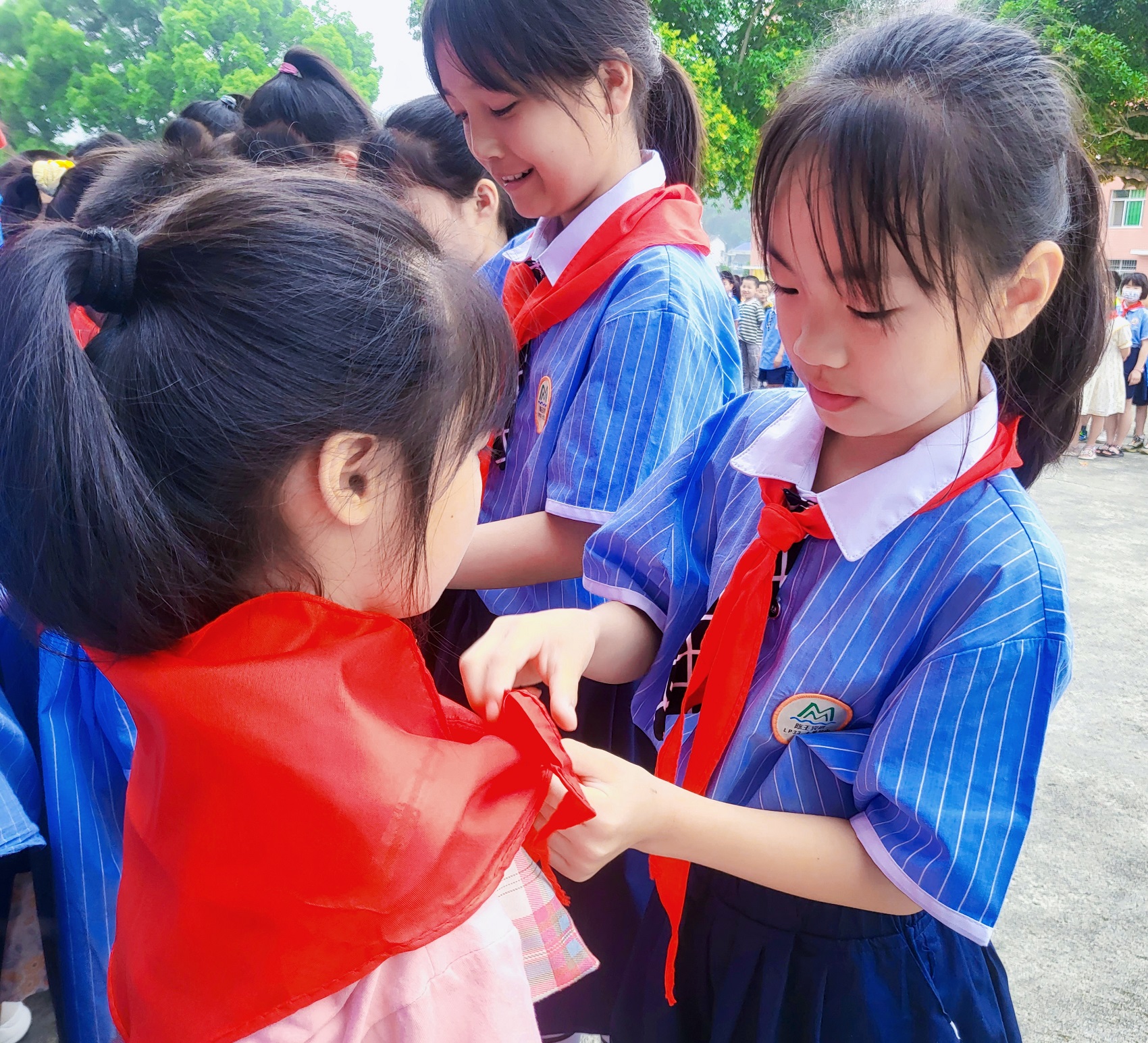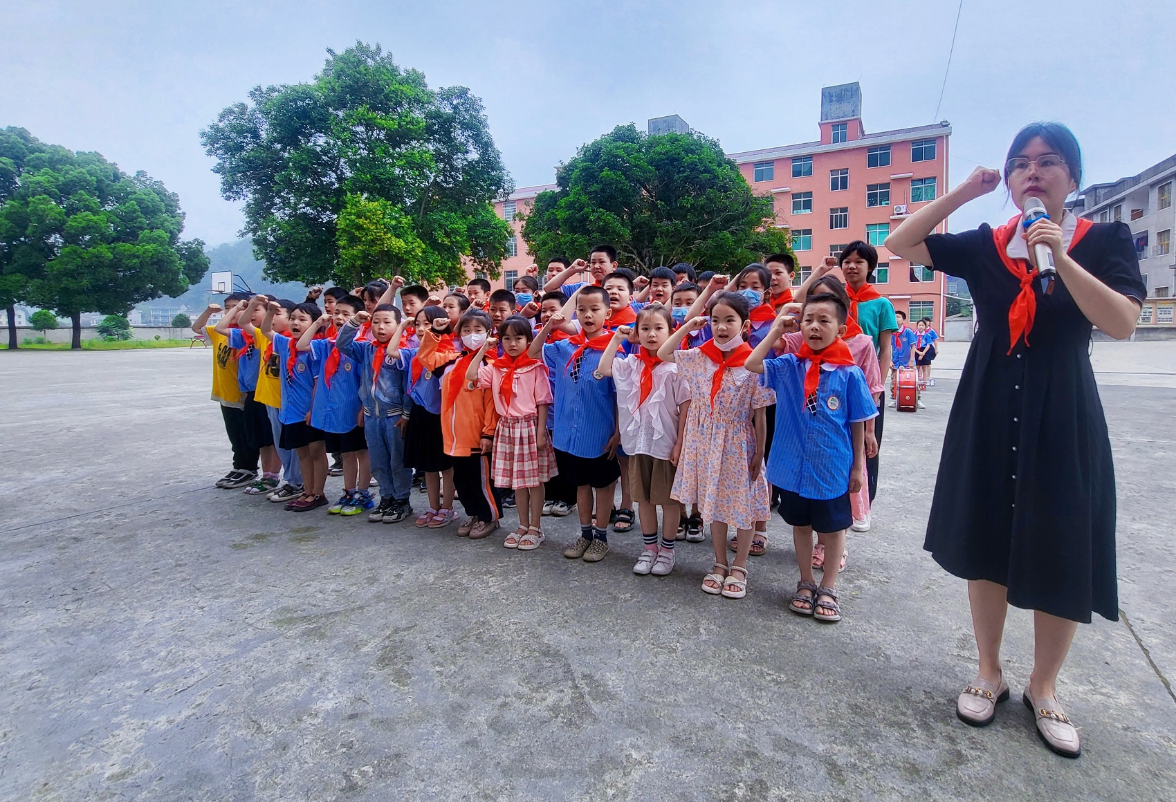 本网讯 5月30日,江南镇陈王完小举行主题为“学习党的二十大,争做好队员”的少先队员入队仪式,全校共40名学生加入中国少年先锋队组织。 活动在铿锵有力的国歌声中拉开帷幕,五星红旗迎风飘扬,徐徐升起。学校旗手们踏着整齐的步伐,精神抖擞。同学们注视着火红的队旗,齐声高唱队歌。“我们是共产主义接班人,继承革命先辈的光荣传统,爱祖国,爱人民,鲜艳的红领巾飘扬在前胸……” 大队辅导员郑逸雯宣读新队员名单,高年级的哥哥姐姐们为新队员戴上鲜艳的红领巾,他们个个精神饱满、神情庄重,满怀着对中国少年先锋队的期待和向往。队旗下,全体队员们庄严的宣誓响彻整个操场,用稚嫩的语言表达自己坚定的信念。同时,学校领导为新建中队的辅导员颁发中队辅导员证书,授中队旗。 “我觉得做少先队员是一件很光荣的事,今天我终于成为一名少先队员,我感到非常开心,我以后要好好学习,成为一名合格的少先队员。”刚成为少先队一员的一年级学生陈瑾妍高兴地说道。 ![]() ![]()