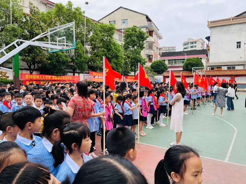 本网讯 5月31日,梅城镇紫云完小举行新少先队员队员入队仪式,123位同学光荣加入中国少年先锋队。