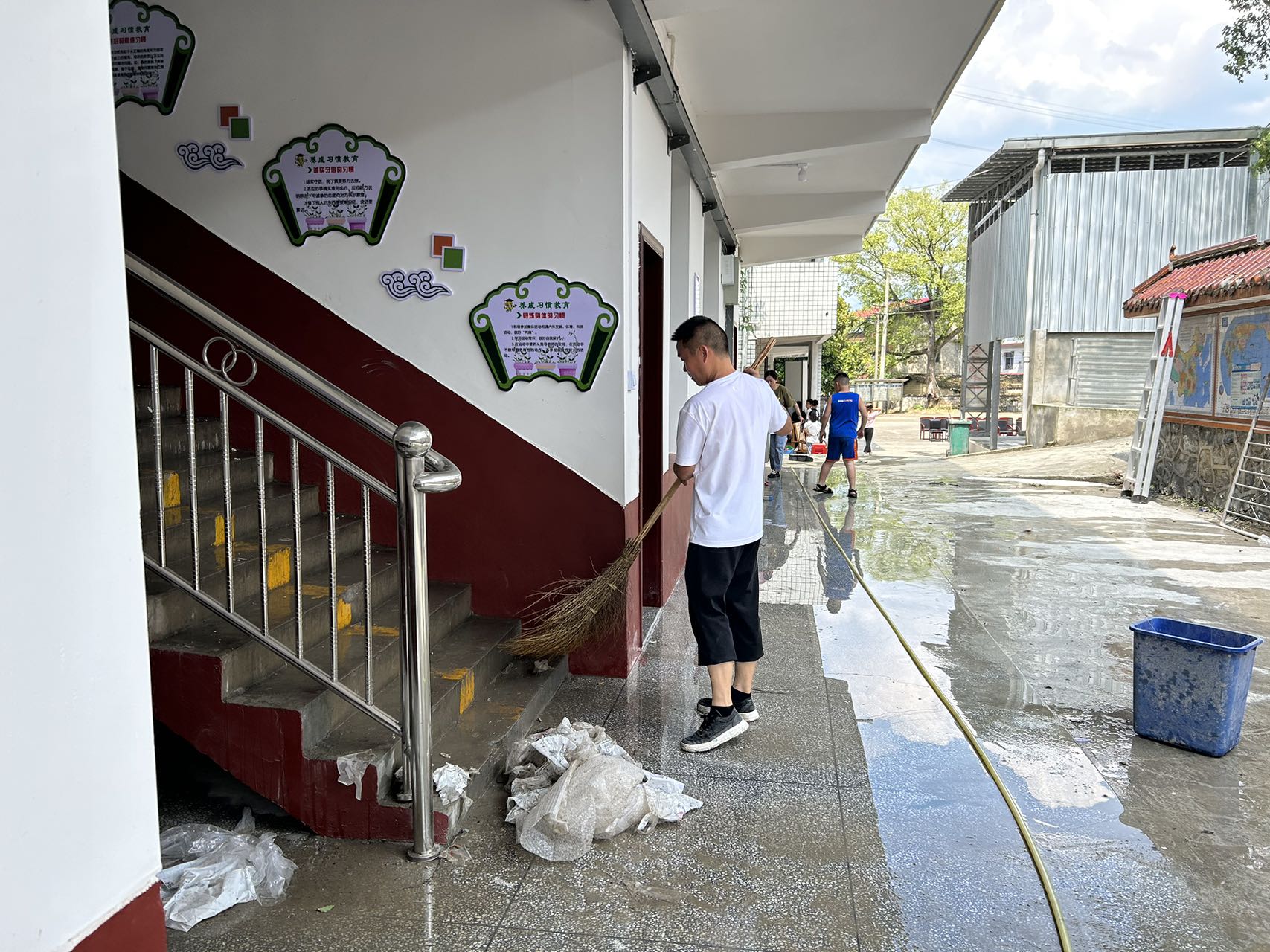 该校初中部正在紧锣密鼓的装修中,同学们手拿扫把、拖把、簸箕等卫生工具,迈着整齐的步伐前往初中部。在劳动过程中,全体师生分工明确,各司其职,积极热情地参与其中,不放过任何一个卫生死角,为了能尽快搬到新校区,同学们不怕苦,不怕累,用心打扫。