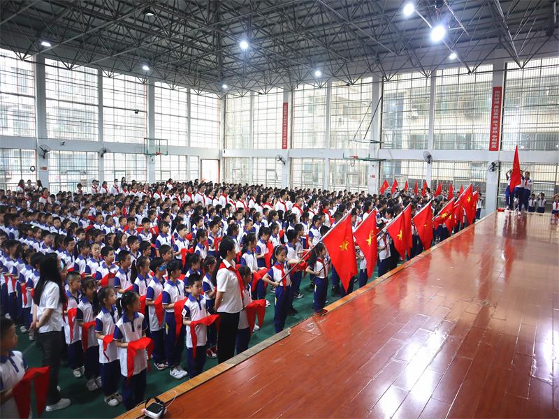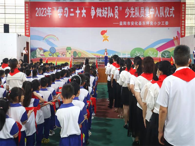本网讯 5月29日上午,东坪镇完全小学少先队大队开展“学习党的二十大 争做好队员”2023年新队员入队仪式。本次活动共有一年级9个少先队中队和一二三年级425名新队员加入少先队组织。 仪式上,大队辅导员赵思宣读批准组建一年级新中队和增加新队员的决定,该校行政、党员教师代表、一年级家长代表、五年级299、302中队优秀学生代表、大队干部代表为新队员佩戴红领巾,为新成立的中队授予中队旗。在大队干部粟紫彤的带领下,小小少先队员们面向队旗庄严宣誓。324中队谌霏萱同学作为新队员代表发言,表示以后将更加勤奋学习、勇于进取、无私奉献,争做优秀少先队员。 学校少工委为新聘任的中队辅导员、校外辅导员颁发聘任证书,为3位2022年度优秀校外辅导员颁发优秀证书,希望他们能继续支持学校少先队工作,带领少先队员茁壮成长。 该校党支部代表陶英勇在发言中强调:少先队员是党的预备队和接班人,队员胸前的红领巾,不仅代表光荣、自豪,也是一种责任,更是一种希望,希望队员们牢记党的嘱托,听党话、跟党走,争做新时代好队员,为共产主义事业贡献力量。最后,入队仪式在队员们庄严的呼号声中圆满结束。