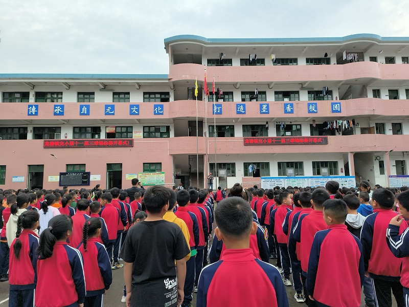 本网讯 5月23日上午,龙塘镇完小第11届三球锦标赛正式拉开序幕。 伴随着激昂的《运动员进行曲》,以班为单位的16支运动员方阵迈着整齐的步伐入场。瞧,他们器宇轩昂,目光坚定,他们意气风发、斗志昂扬,充分展现了该校“自元”学子“自信、向上”的阳光体育理念和精诚团结的风貌。 庄严的升旗仪式后,支部书记、校长王勋致开幕词,为运动健儿们加油;总裁判长黄巍宣布该校第11届三球锦标赛开幕,并预祝本次三球锦标赛获得圆满成功。