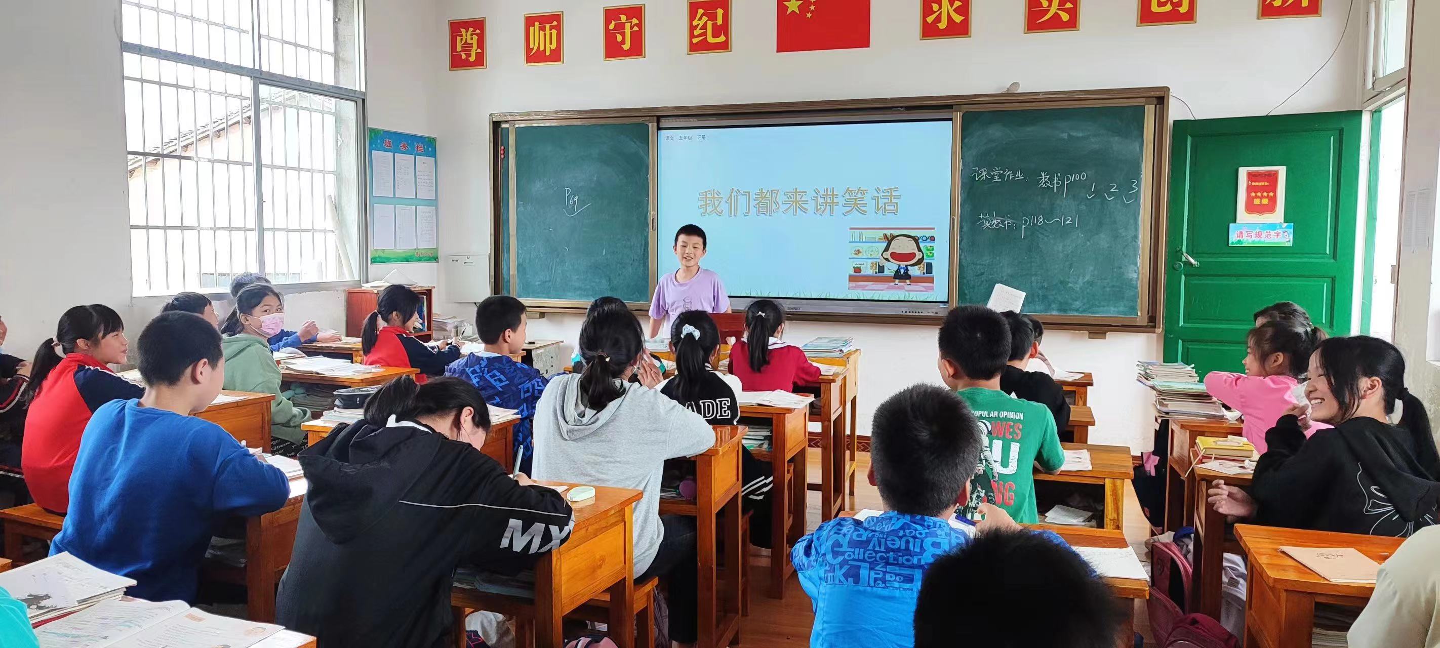 本网讯 “哈哈哈,哈哈哈……”5月15日上午第三节课,田庄乡茶家学校五年级教室里传出阵阵稚嫩的笑声,该班语文老师夏红霞组织学生们进行以“我们都来讲笑话”为主题的口语交际活动。 夏红霞让同学们课前先搜集笑话,课堂上再和同学们一起学习讲笑话时的四个注意事项:要熟记笑话的内容;尽量表现出笑话中人物的神态、语气和动作;克服口头禅、重复等不良的口语习惯;要沉住气,自己不要笑场。然后在四人小组内练习讲,最后每组推选最优秀的同学上台讲。同时提醒听众:用心倾听,做文明听众。同学们个个摩拳擦掌,跃跃欲试,都迫不及待地想登台分享。整个过程掌声、笑声此起彼伏,同学们乐在其中。
