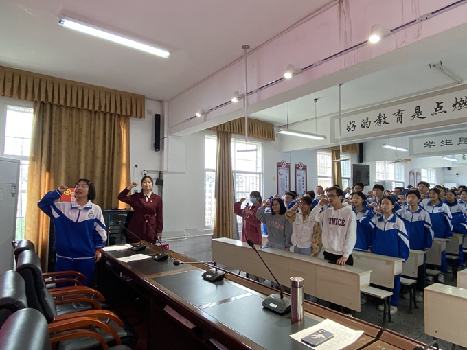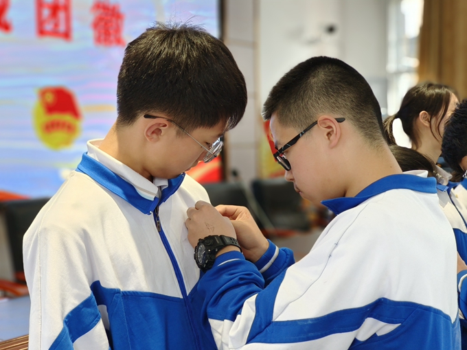 本网讯 5月11日,东坪镇中学在党支部的领导下,举行新团员入团仪式和十四岁集体生日活动。 30名老团员和100多名新团员齐聚该校六楼大会议室,在庄严的国歌声中,老团员庄重地给新团员佩戴团徽,并宣读入团誓词。新老团员的代表发言发自肺腑,学校党支部副书记谢立贤的讲话言简意深。新团员在“光荣啊!中国共青团”歌声和手势舞表演中表达了加入中国共产主义青年团的激动心情 八年级十四岁集体生日活动在该校大操场举行。活动一开始,“我们,十四岁啦”心愿感恩视频让在场的学生沸腾起来,年级主任黄桃开的青春寄语更让大家心潮澎湃,而12名任课教师极具学科特色的祝福语将活动推向了高潮,让现场的掌声和欢呼声一浪高过一浪。八年级新团员领诵的《我们十四岁》青春誓词,在全体学生雄壮的“为祖国的富强、民主和文明……”誓言中,活动圆满落幕。