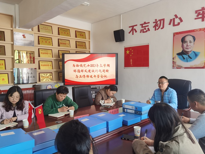 本网讯 5月11日下午,马路镇完小召开师德师风建设问题剖析与工作推进部署会议。党支部书记、校长熊卫军主持会议并部署具体工作。 熊卫军对现阶段存在的师德师风问题进行了剖析。他指出,要提高政治站位,真正认识整治工作的重要意义。学高为师、身正为范,师者为师亦为范,潜移默化中,教师的一言一行都给学生以极大影响,教师就是学生道德修养的镜子,师德师风直接影响着学生的学风。要深刻认识其重要性,认识到师德师风建设是推进清廉建设的重要手段,是构建好大思政格局的重要内容,是落实立德树人任务的根本保证。 熊卫军强调,2023年是全县教育教学质量提升年、作风建设提升年、教育系统队伍建设年。要坚持系统施策,做好整治工作的“三个结合”。一是要坚持正面引导和反面警示相结合。要全面培树优秀典型,弘扬主旋律,传播正能量,发挥榜样作用。同时要常态化开展师德师风警示教育,让教师知敬畏、存戒惧、守底线。二是要坚持监督预防与严肃惩戒相结合。坚持预防为先,惩戒并举,领导干部要提高善于发现苗头性、倾向性、隐蔽性问题的本领,加强日常监督。对于师德失范行为,态度坚决、果断处理。三是要坚持严管严治与关心关爱相结合。坚持严的基调,让广大教师明白,严管也是一种厚爱。同时领导干部要深入一线,了解教师思想困惑和实际困难,积极为教师排忧解难。