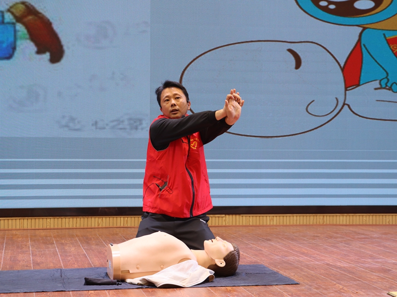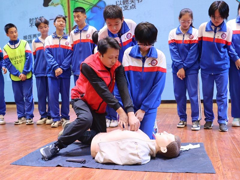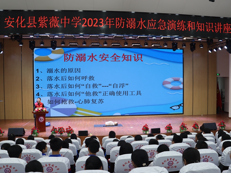 本网讯 5月11日上午,安化县紫薇中学邀请县志愿服务工作联合会溺水救援专业人员入校进行防溺水应急演练和知识讲座。 县志愿服务工作联合会的老师从溺水原因,溺水后呼救、自救、他救以及如何进行心肺复苏等方面对大家进行防溺水知识的宣讲。 培训会上,讲师们结合日常生活实际,详细讲解了溺水的表现,以及溺水自救、岸上救护等现场救护的原则和方法,并利用模拟人现场进行了整个急救过程的演练,以便让大家能够熟练掌握开放气道、胸外按压、人工呼吸等急救要领。他指导大家进行了现场操作,手把手地教授师生们溺水抢救、气道异物梗塞等现场急救方法和急救原则。