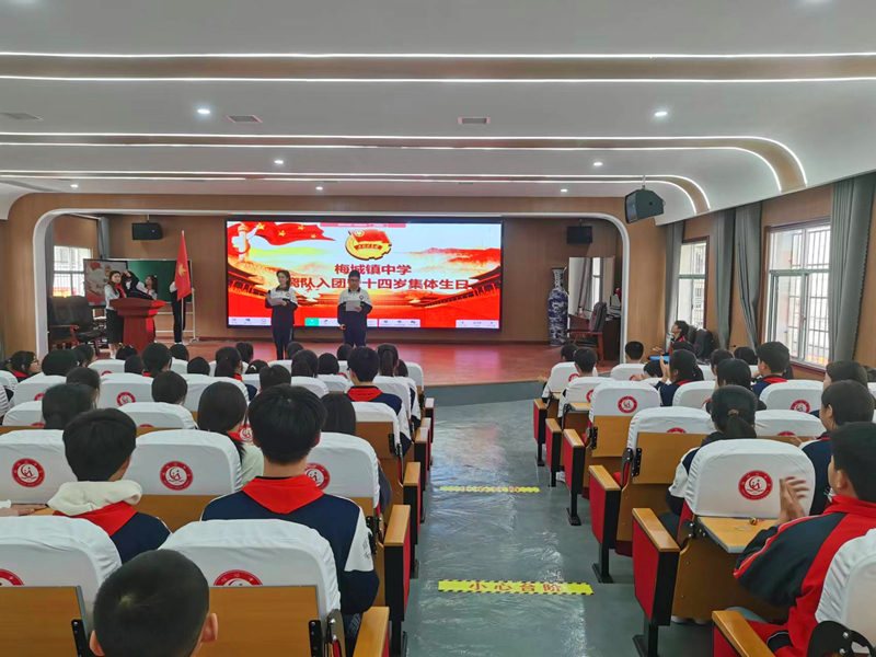 本网讯 5月8日下午,梅城镇中学举行离队入团暨十四岁集体生日活动。 队旗高扬,全体队员高唱《中国少年先锋队队歌》,向少先队作最后的致敬,在铿锵有力的宣言中迎接属于他们蓬勃热烈、激情洋溢的青春。告别少先队,是成长道路上的一个里程碑;摘下红领巾,是迈向青春的第一步。 入团,青春的誓言气势高昂,彰显着成为一名团员的光荣感和责任感。校团委书记赵霞号召新团员用责任感和使命感浇铸坚实的团徽,成为能够肩负起时代使命的优秀青年。新老团员合唱共青团团歌为此次离队入团活动拉下帷幕,但青春的华章仍在继续,在集体朗诵活动中,庆祝这场“十四岁集体生日”。 副校长李德良表示,要坚定理想信念,提高自身道德品质和思想境界,做一个思想上合格的人;要勤奋学习,勇于实践,做一个知识与行动统一的人;要甘于奉献,努力做倡导新风、自觉奉献的楷模。