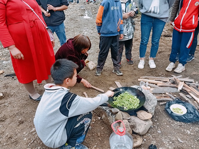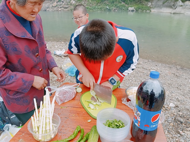 本网讯 5月8日上午,乐安镇完小全体师生前往乐安镇乐兴村举行野炊社会实践活动。 各班列队在操场上集合,班旗迎风飘扬,政教主任李斌强调活动安全、文明、爱护环境等事项,一条五颜六色的“长龙”在碧绿的田野漫步,同学们提着油、盐、米、高压锅、菜锅、蔬菜、水果,脸上开心的笑容与花草融为一体,不知不觉到达了野炊地点。 垒灶、淘米、切菜、生火......不一会儿,袅袅炊烟升起,学生、家长相互配合,指导孩子们煮饭、炒菜,不怕苦、不怕累,锅碗瓢盆声凑成了美妙的乐章,“吃饭啦,干杯”“老师,到我们这来吃菜”,所有师生、家长分享着美食,连连称赞,吃了一碗又一碗。 各组享受完美食后,拾捡地面的塑料垃圾,用垃圾袋装好统一进行处理。
