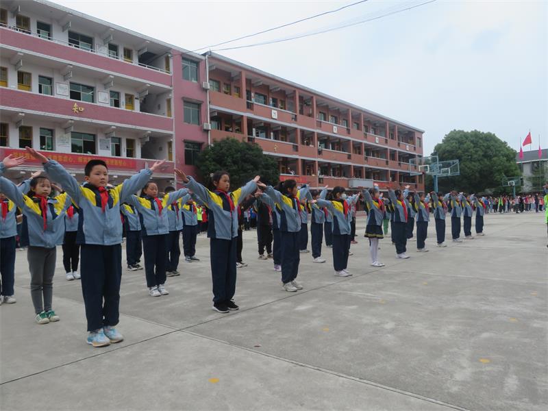 本网讯 5月8日上午,平口镇完小在操场上进行以年级为单位的广播体操比赛。 学校体育组提前制定了详细的比赛方案,各班级充分准备,体育老师联合各班主任密切配合、科学训练,力求让每一位同学掌握动作要领、节拍和力度。 比赛形式按年龄不同划分为:一年级展示列队,二年级跳操《锄禾日当午》,三四年级做操《弟子规》。随着熟悉而又轻快的广播操音乐响起,同学们个个精神抖擞,抬头、弯腰、伸手、抬腿,每个动作都刚劲有力,展现了当代小学生的蓬勃朝气和健康活力,赢得了现场评委的阵阵掌声! 经过激烈的角逐,评委老师们从服装、动作、精神风貌等方面进行全面评分,最终评定149班、141班、140班和128班获得该广播体操比赛一等奖。