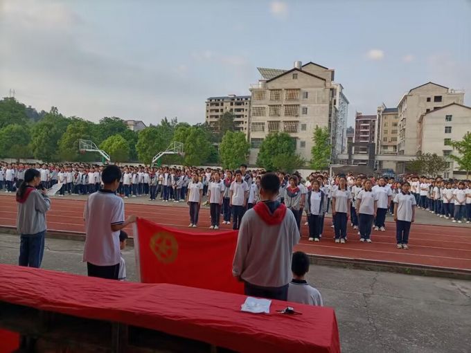 本网讯 5月4日,江南镇中学在操场举行新团员入团仪式,全体师生参加。 “我志愿加入中国共产主义青年团,坚决拥护中国共产党的领导,遵守团的章程,执行团的决议,履行团员义务,严守团的纪律……”在入团仪式上,该校33名新团员面对团旗,举起右手庄严宣誓,表达了“勤奋学习,积极工作,吃苦在前,享受在后,为共产主义事业而奋斗”的青春誓言。 刘奥琳代表新团员,在发言中表示加入中国共产主义青年团,成为中国共产党的后备军,将承担起一份沉甸甸的责任,同时也有了一个更高更远的奋斗目标。作为一名团员,应以身作则,发挥先锋模范作用,要与时代相辉映,要与祖国同奋进,立坚贞志,唱奋进歌,不负青春,筑梦向前。 教导处主任周玉向全体师生解读了团员的义务和权利,要求每一位团员在享受自己权利的同时,要切实履行自己的义务。新时代的江中师生,要敢于担当,奋勇争先,不负韶华。 该校校长陈良勉励团员们带好头,服好务,成为同学们的先行者;鼓励没有入团的同学要向团员看齐,向先进看齐,争取早日加入团组织;希望全体师生传承“五四”薪火,踔厉奋发,锐意进取,同心逐梦,砥砺前行。