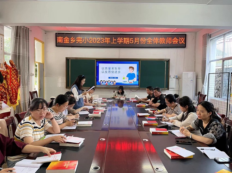 本网讯 5月3日晚,南金乡完小组织召开5月份全体教师会议。 会议在教师阅读分享中拉开帷幕,夏菲为大家带来《一个很好很好的小孩》读书感悟,告诉教师要善于发现孩子们身上的闪光点,用爱与真诚陪伴孩子们安然成长。黄佩瑶分享班主任心得《班主任工作漫谈》,从爱出发,以切身体会去走进孩子们的内心,与其做朋友。 学校行政对各块负责工作做以精简总结和详细部署,为老师们现阶段工作指明了方向。校长夏晶肯定了一大批爱岗敬业,无私奉献的教师模范,并对上月工作进行了小结。指出行动是治愈恐惧的良药,而犹豫拖延将不断滋养恐惧。四月忙于耕种的南小人用行动诠释了什么是南金教育的窗口学校。强调安全工作警钟长鸣,天气逐渐炎热,尤其是防溺水安全勿松懈;树立六年质量意识,对于弱势学科以行政听课等方式来促提升;规范常规管理,首先看态度,关键看行动,最终看效果;家长开放日活动思想与行动要高度重视。 老师们在会议过程中认真领悟会议精神,纷纷表示将抓实教研,精准施策,咬定目标,以良好的教风创造南金教育新的辉煌。