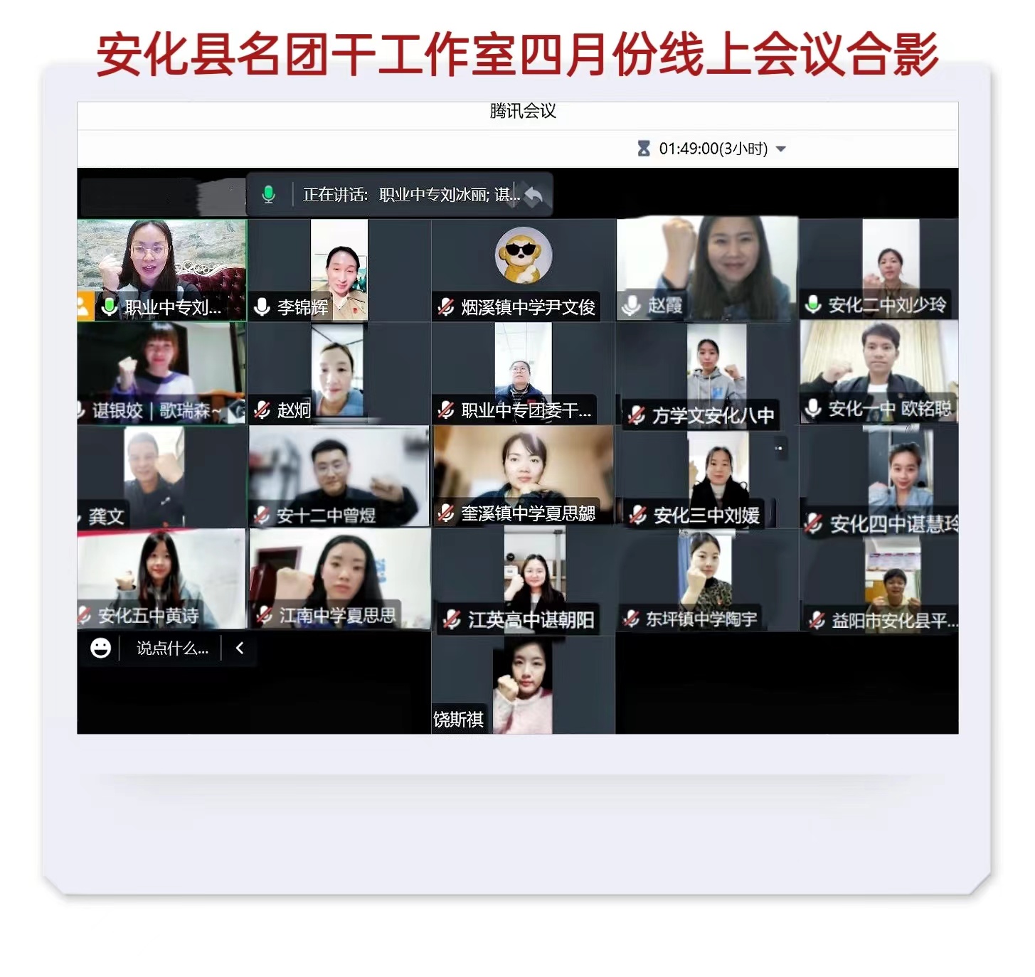 本网讯 4月28日晚,安化县共青团名师工作室召开第二次线上交流研讨会议,会议以“传承经典,筑梦未来”为主题,由安化县职业中专学校团委书记刘冰丽主持。 活动中,平口镇中学团委书记史博成细致地讲解了关于入团标准、入团程序、智慧团建系统录入的相关内容;梅城镇中学团委书记赵霞分享关于入团离队仪式及十四岁集体生日的相关流程,强调“仪式感”对于青少年成长的重要性;刘冰丽就2023年“新时代好少年”读书活动的开展做了文件解读,并以安职四月“楚怡读书活动”为例,分享活动组织经验;安化县五雅高中团委书记龚文在分享关于十八岁成人礼中强调“德育先行,思想先行”。 主题宣讲后,工作室成员展开了积极研讨。安化二中团委书记刘少玲分享了该校近两年来关于十八岁成人礼及百日誓师大会的相关经验:把《中华人民共和国宪法》作为高三学子的成人礼礼物,以唤起学生的担当和责任意识。 县教育团工委书记李锦辉全程参与,对会议筹备小组给予了充分肯定,并就各成员提出的问题进行了专业解答。工作室的全体成员会后积极提交笔记心得,并达成“创建省级名师工作室”的目标共识,以风华正茂的昂扬之姿投入共青团工作。 |