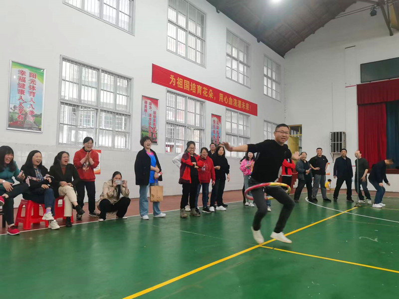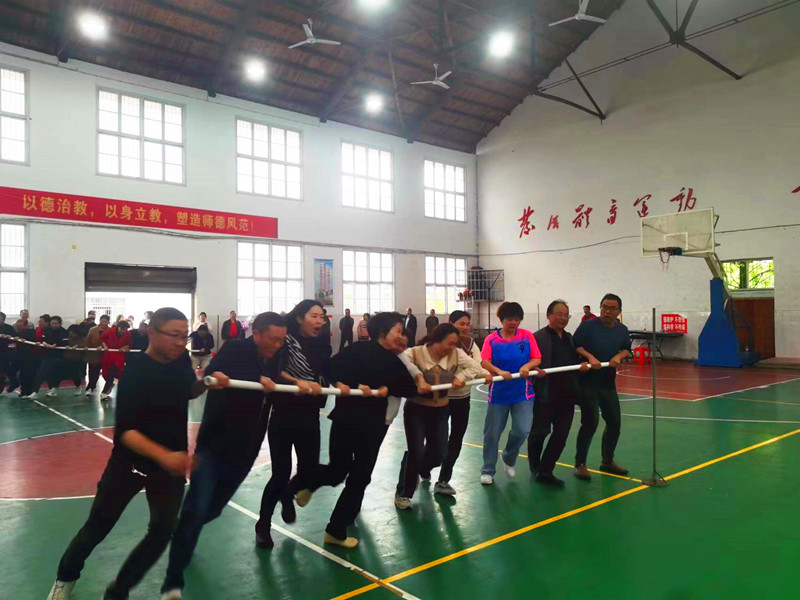 本网讯 4月28日下午,梅城镇中学举办“喜迎五一·快乐运动”教职工趣味运动会,通过螃蟹赛跑接力、疯狂大转盘、篮球等集体项目,提升教师身体素质,丰富教师业余生活,喜迎“五一”国际劳动节。 开幕式由学校团委书记赵霞主持,校长喻选民在开幕式上作动员讲话,喻选民强调了运动对于健康、工作和生活的重要性,倡导教职工们要快乐工作,幸福生活。 活动现场高潮迭起,气氛热烈,加油声、呐喊声、欢呼声此起彼伏,老师们互相鼓励、互相帮助,发扬了团结协作的精神,气氛热烈而又紧张,扣人心弦而又不失活泼,师生的脸上都洋溢着喜悦和幸福。运动场上,看到老师们的别样风采,胜利时,他们也会如孩子般在赛场上欢呼雀跃,在赛场上尽情挥洒着青春,释放着激情。