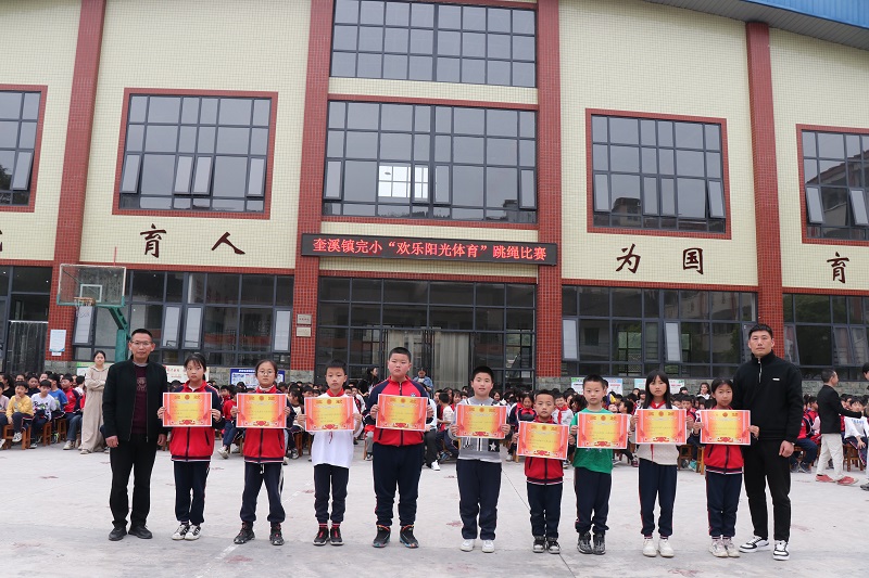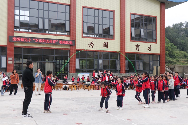 本网讯 4月27日,奎溪镇完小开展以“齐心协力 “绳”彩飞扬 ”为主题的跳绳比赛,全校600多名师生参与活动。 随着裁判员的一声令下,长绳在摇绳同学奋力摇动下上下飞舞,所有选手们听从口令从翻飞的大绳中整齐跳起。他们身轻如燕、矫健似鹰,有节奏地进行着表演。当有同学不小心踩着绳子,其他同学并没有放弃,以沉着冷静之姿迅速调整继续比赛。观赛的同学不时发出啧啧惊叹声。时间到!队员们个个脸上露出了胜利的喜悦。 经过激烈角逐,一年级2201班36次、二年级2102班53次、三年级2003班73次、四年级1901班117次、五年级1802班187次、六年级、1702班181次获得一等奖。 据悉,奎溪镇完小一直以来关注学生的身心健康,从一年级入学就要每天进行跳绳打卡活动,目的是让每名同学都拥有健康的体魄。
