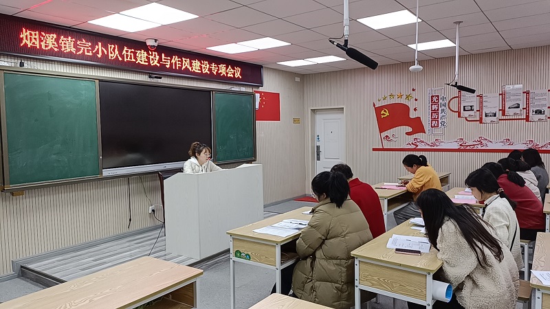 本网讯 4月25日下午,烟溪镇完小召开教师队伍建设与作风建设专项会议,会议由分管师德师风的副校长彭向阳主持,全体教职工参加。 校长刘芬作“作风建设提升年”活动总动员,他组织学习《关于加强和改进新时代师德师风建设的意见》《益阳市中小学教师师德考核负面清单》。他要求全体教师要加强师德师风建设和个人作风建设,要以德立身、以德立学、以德施教,做党和人民满意的新时代好教师! 彭向阳作“强化作风建设,恪守教育初心”的师德专题讲座。他从学校作风建设中存在的主要问题、作风建设活动的主要内容、违反作风建设的处理措施及作风建设具体要求等四个方面进行解读,并联系身边的实际事例,向教师们阐述了何为师德,如何做一名幸福的教育工作者。