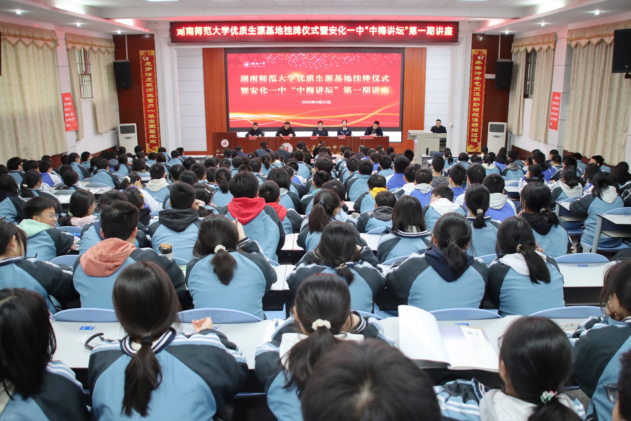 李远喜致欢迎辞。全校师生将以授牌“优质生源基地”为契机,进一步推动学校教育教学水平高质量发展,为更多学生顺利进入高校深造打下坚实基础,努力向湖南师范大学输送更多优质生源。 段婷对湖南师范大学的办学历史、办学规模、学科设置以及化学化工学院的基本情况进行了详细介绍。杨荣华作《化学的昨天、今天和明天》主题讲座。他的讲座深入浅出,从自身在化学路上的求学追梦经历出发,用生动的语言向同学们讲述了化学专业的发展历程与未来发展前景,以及化学在提高人类生活质量、促进社会发展方面的重要作用。同学们从杨院长的讲解中对化学产生非常浓厚的兴趣,在杨院长的引导下,开启认识化学新世界的大门。 据悉,中梅讲坛源于学校前身“中梅书院”,是由安化一中打造的一个通识教育平台。其传承并创新了传统的“会讲”形式,以讲座、专题报告、演讲等方式开展活动。该讲坛由校友总会牵头组织,邀请校友及社会各界人士莅临讲学。活动旨在聚合各方资源,突出价值引领,丰富知识,拓宽眼界,启迪思维,立足大教育的思想高地,着力打造文化强校的亮丽名片。