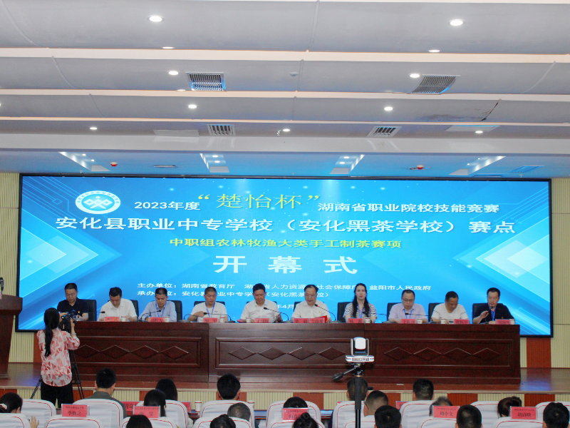 本网讯 4月20日,2023年度“楚怡杯”湖南省职业院校技能竞赛中职组农林牧渔类手工制茶赛项开幕仪式在安化县职业中专学校(安化黑茶学校)举行。来自全省18所中职学校的72名参赛选手及领队、指导老师参加开幕式。安化县人民政府党组成员、副县长莫超主持开幕式。 益阳市人民政府副秘书长王国保指出,此次竞赛既是贯彻落实党中央、国务院实现乡村振兴、提高人民生活水平的决策部署,也是贯彻落实全国全省职业教育大会精神,激励广大青年走技能成才和技能报国之路的有力措施。本次比赛必将进一步营造崇技能的良好社会风尚,进一步推动湖南职业教育高质量发展,为湖南省实现乡村振兴提供更加有力的人才保障,为茶产业高质量发展提供职教力量。 赛点主任、安化县职业中专学校(安化黑茶学校)党委书记、校长刘迪凡表示,学校已先后两次承办此类赛事,学校各块口、各部门将在大赛组委会的统一领导下,高质量、高水平做好各项服务工作,营造严格公平的竞赛环境,确保大赛取得圆满成功。他表示,学校将以此次技能竞赛为契机,坚持文化学习和技能培训并重的育人理念,坚持服务区域经济社会发展,深化产教融合、校企合作,培养更多高素质茶技人才、能工巧匠、大国工匠,助力乡村振兴战略实施。