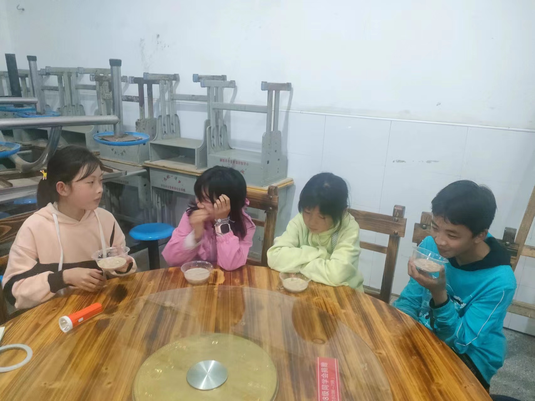 本网讯 4月20日,是传统的二十四节气的谷雨,思游完小五六年级的寄宿生在下晚自习后到食堂一楼,品尝由学校专门为他们准备的擂茶。 谷雨到,万物生。在思游这个地方,谷雨这一天,家家户户都要打擂茶,每个人都要喝擂茶,“喝了谷雨茶,饿死郎中的伢”。而思游完小五六年级却有近四十名学生,因为特殊原因,在学校寄宿,无法喝到擂茶,于是,学校食堂为这群孩子精心准备了擂茶。当听到学校准备擂茶,这群孩子欢呼雀跃起来,簇拥着来到食堂一楼,围坐一团,喝起擂茶,聊起天来。 据悉,思游完小每个节日、节气,都会遵照传统文化,打谷雨茶,地菜煮蛋等等,真正体现了学校的理念:老师用心,家长放心,学生开心。学校谷雨节气的擂茶,温暖了这群留守儿童的心田。