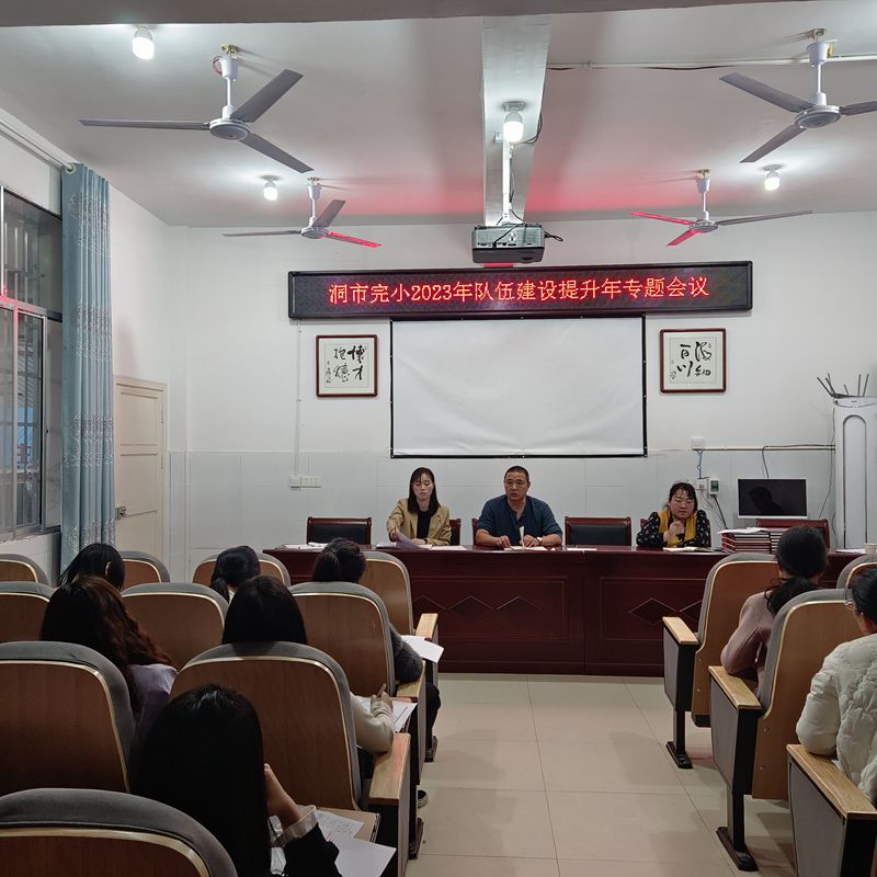 本网讯 4月10日晚,江南镇洞市完小召开“作风建设队伍建设”专题会议,该校校长陈实主持会议,全体教师参会。 会上,该校办公室主任蒋进娟向全体教师传达了《安化县教育局开展“队伍建设提升年”主题活动实施方案》精神,结合学校实际情况,针对教育教学工作已经出现的或有可能出现却决不能出现的作风问题,一一进行剖析和警示,并针对教职工的工作纪律性、工作责任心、工作效率、落实岗位职责等纪律作风建设工作进行了具体的安排。 陈实强调,2023年是作风建设提升年,全体教职工要充分认识到加强作风建设整顿的必要性和紧迫性,以作风转变为核心,努力提高工作效率,增强服务精神,真正把好的工作作风用于教育事业。