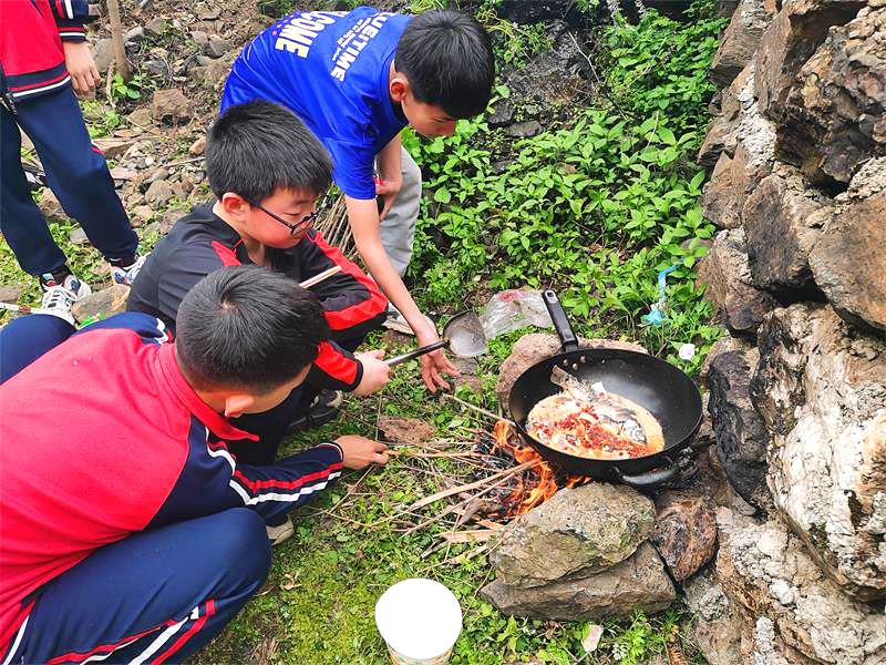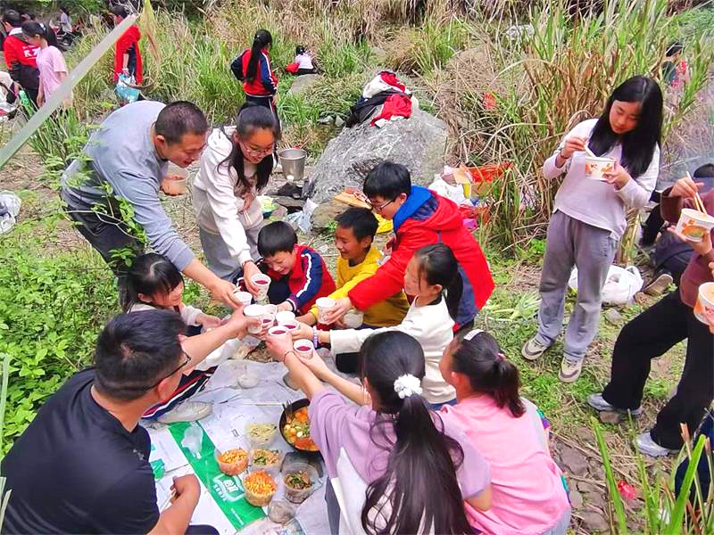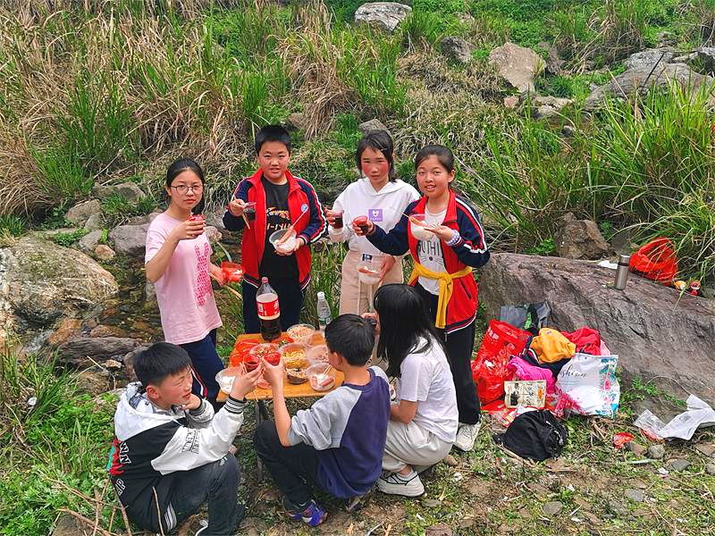 本网讯 4月10号,高明乡完小组织四五六年级全体学生到依山傍水的美丽山村滑油江,开展为期半天的野炊实践活动。 活动过程中,同学们分工合作,紧张地忙碌着;搭灶安锅、搬柴择菜、蒸烹煎炒......八仙过海,各显神通,不一会儿,活动场地里炊烟袅袅,阵阵香味弥漫四周。 经过大家的共同努力,色香味俱全的饭菜纷纷出锅,番茄炒蛋、青椒炒肉、红烧鲤鱼、鸡肉春笋火锅.....同学们迫不及待地拿起小碗,排队盛饭,然后席地而坐,津津有味地品尝着自己的劳动成果,每一个孩子的脸上洋溢着开心、幸福的笑容。 据悉,活动前期,各班进行了分组、分工,并结合自己的生活经验,通过交流、策划、绘画等方式制定野炊计划。各个"小厨师"还利用周末时间请教家长野炊的技巧,在家勤练身手,精心制作自己的"拿手绝活",期待着和伙伴们分享。
