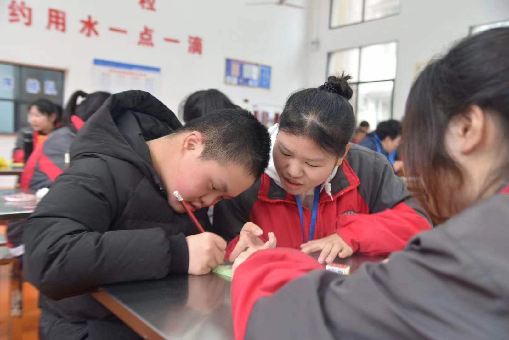 本网讯 3月23日上午,安化县特殊教育学校与安化县职业中专举行“春暖花开情暖校园,你我携手与爱同行”融合教育交流活动,该校全体师生及职业中专团委及社会文化艺术专业2111班全体学生参与。 职业中专2111班的学生为特校学生表演了舞蹈《把未来点亮》《音乐盒》等舞蹈节目,并一起学习了手势舞《YES OK》,学生们通过音乐表演的方式,互相交流沟通,融合你我,架起友谊的桥梁,将活动气氛推向了高潮。热场活动后,职业中专社会文化艺术的学生们耐心细致地指导特殊学生制作折纸——郁金香、剪纸——花朵。看似简单的手工技艺,却花费大、小朋友不少的时间与精力。互动过程中,小指导老师们讲解详细、示范科学;特殊孩子们投入积极,神情专注。经过各位“小老师”手把手的悉心指导,原本普普通通的纸张,变成了一个个精美的手工作品。学生们脸上都带着喜悦的笑容,纷纷在相机前展示着自己的劳动成果。最后,活动在全场合唱《最美的太阳》的旋律中落下了帷幕。 活动结束后,职业中专组织了总结交流会,深化学生对活动的感悟。双方还达成了一期一合作的共识,推动职业教育与特殊教育的深度融合。 据悉,这是职业中专学生第二次到该校开展融合教育活动。普特教育资源共享,携手探索教育新模式成了两校教育教学改革的契合点。根据职业学校与特校孩子的特点,通过形式多样、开放式、融合性强的交流方式开展融合活动,开阔了双方学生眼界,促进了学生们的共同成长。