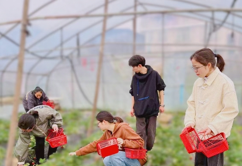草莓大棚里,绿叶衬红果,芬香扑鼻来。活动中,大家一边采摘草莓一边谈笑,欢笑声与生机勃勃的绿色交织在一起,快乐热情四溢,既体验了田园劳作乐趣,又收获了沉甸甸的“战利品”。