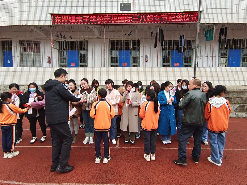 本网讯 3月8日上午,东坪镇木子学校组织一场别开生面的献花仪式,为女教职工庆祝第113个三八国际妇女节。