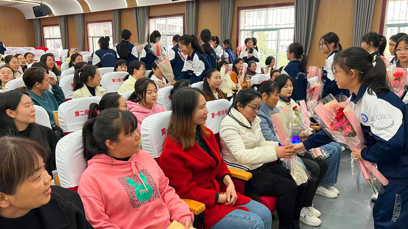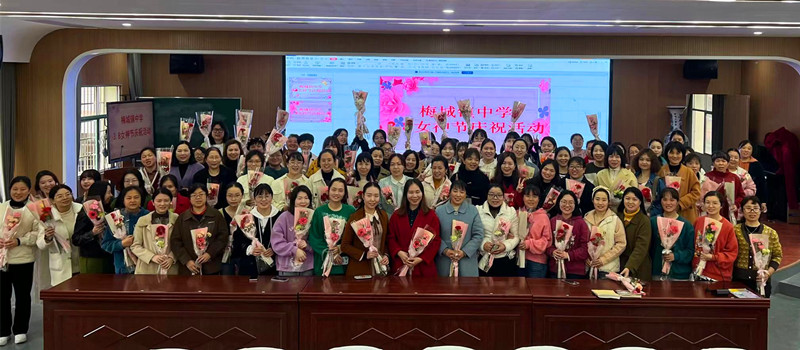 本网讯 3月8日上午,梅城镇中学工会、团委组织开展妇女节庆祝活动,此次活动得到学校领导的大力支持和全体女教师的积极响应。 活动在嘹亮的国歌声中拉开了序幕,参与活动的所有人员齐唱国歌,深情的歌声与雷鸣般的掌声融合在一起,现场气氛热情洋溢、振奋人心。 全体团委干部表演诗朗诵《至最可爱的老师》,赞美了该校女教职工“巾帼不让须眉”的风采,生动展现出“半边天”奋斗拼搏的崭新精神面貌,深情表达出对老师的感动、感激之意! 活动最后,该校学生代表为全体女教职工献花。当芬芳的鲜花和女教师们的笑脸融合在一起,校园里洋溢的是一片温馨和甜蜜。