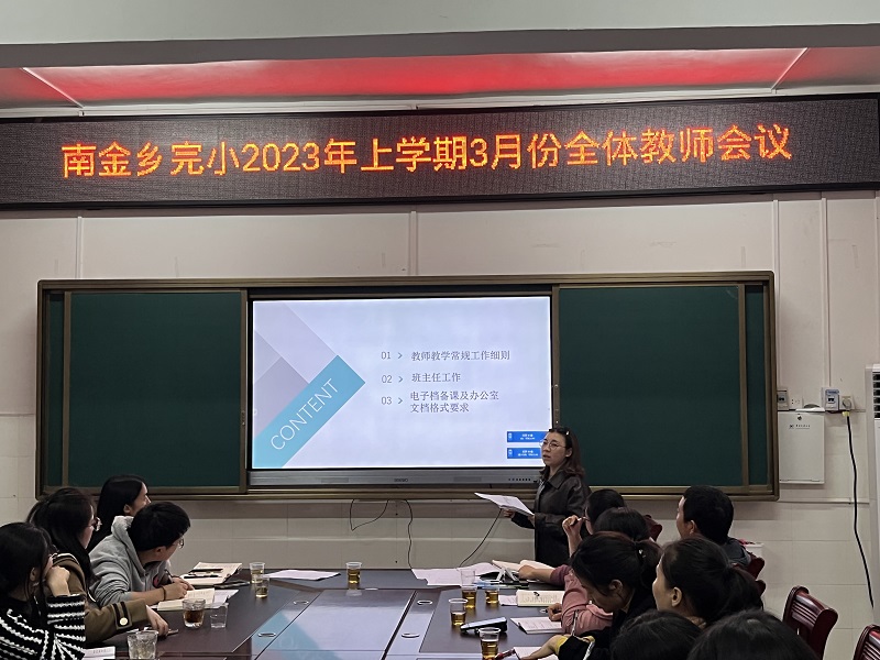 本网讯 3月7日晚,南金乡完小组织召开3月份全体教师会议。 会议在教师阅读分享中拉开帷幕,林嘉乐为大家带来《给青年教师的36条成长建议》读书感悟,告诉新教师要善于从做过的事中积累经验;失败了,要认真反思;成功了,要及时总结。谌蕾分享《草房子》,希望老师们热爱生活,能在逆境中拼搏,具有永不言弃的精神。 学校行政对各块负责工作做以精简总结和详细部署,为老师们现阶段工作指明了方向。校长夏晶肯定了一大批爱岗敬业,无私奉献的教师模范,并对开学工作进行了小结。同时希望老师们沉下心备教材,深度融合;沉下心备学情,因材施教;沉下心做研究,做好课题;沉下心做自己,做好规划。 教育从来无捷径,循序渐进登高峰。该校将继续扎实稳定推进各项工作,助推学校教学质量再上新台阶,为学生的终身发展奠基。