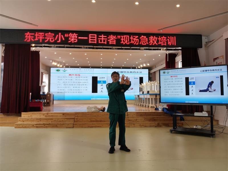 本网讯 3月6日下午,东坪镇完全小学邀请安化县人民医院急诊科专家郭笑天一行,到该校开展 “第一目击者”现场救护培训,该校全体师生共计2900人参加培训。 培训分为理论讲解、演示操作两个内容。郭笑天详细讲解了心肺复苏基本操作、气道异物梗阻及创伤急救知识,现场演示了心肺复苏实施、胸外按压、AED(自动体外除颤仪)操作使用流程。把急救知识与现场急救相结合,内容深入浅出,整个培训步骤清晰、操作简易,语言通俗易懂,增强了该校师生对日常突发意外伤害的防范意识。 该校副校长黄飞翔对本次培训活动进行了总结,他表示:这次培训不仅让师生们认识到第一目击者现场救护的重要性,还掌握了紧急救护的正确方法,增强了应急处置能力。 接受了现场培训的六年级方玉润同学高兴地说:“通过这次培训,我学到了很多实用的救护知识。我要将这些知识告诉我的家人,让他们也能在紧急情况下能够正确处置,保护好自己的家人,帮助需要帮助的人。”