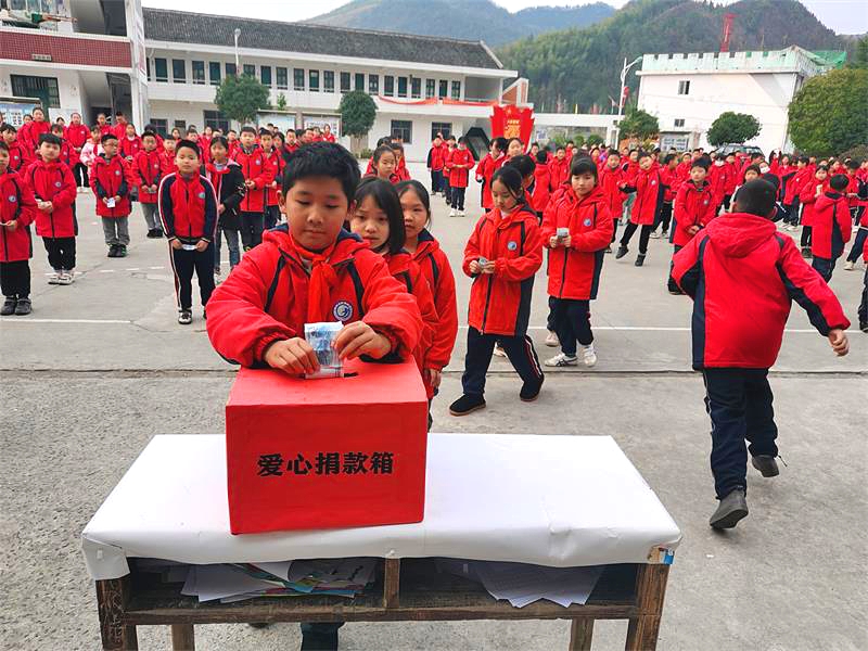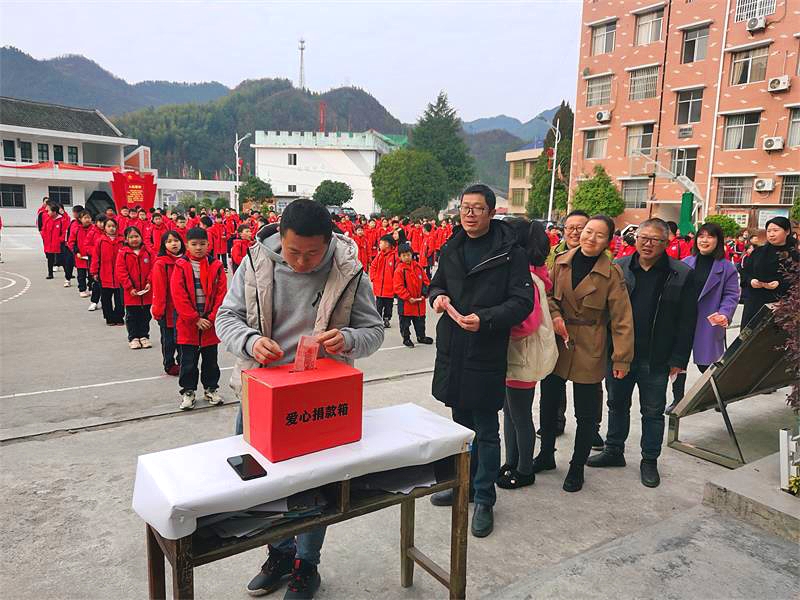 本网讯 3月6上午,高明乡完小在学校操场上,举行“学雷锋,献爱心”募捐活动,全体师生排着长长的队伍,争先恐后把自己准备好的爱心钞票放进捐款箱。 据悉,2月下旬,高明乡完小学生小琪(化名)因身体不舒服,被父母带到医院检查,诊断出急性白血病,该学生父母均是农民,且母亲患有羊痫风,只能靠父亲打点零工维持生计,巨额的医疗费对于一个普通家庭来说无疑是雪上加霜。得知该同学的情况后,学校第一时间做出部署,向全校师生发出募捐倡议,全校师生积极响应学校号召,踊跃捐款,表达对小琪同学的关心,活动一共募捐1.15万余元,并于当天上午交给该学生家长。 捐款不分多少,善举不分先后,每一份捐款含着无价的爱心,托起一份希望,希望小琪积极配合医院治疗,早日战胜病魔,回归校园。