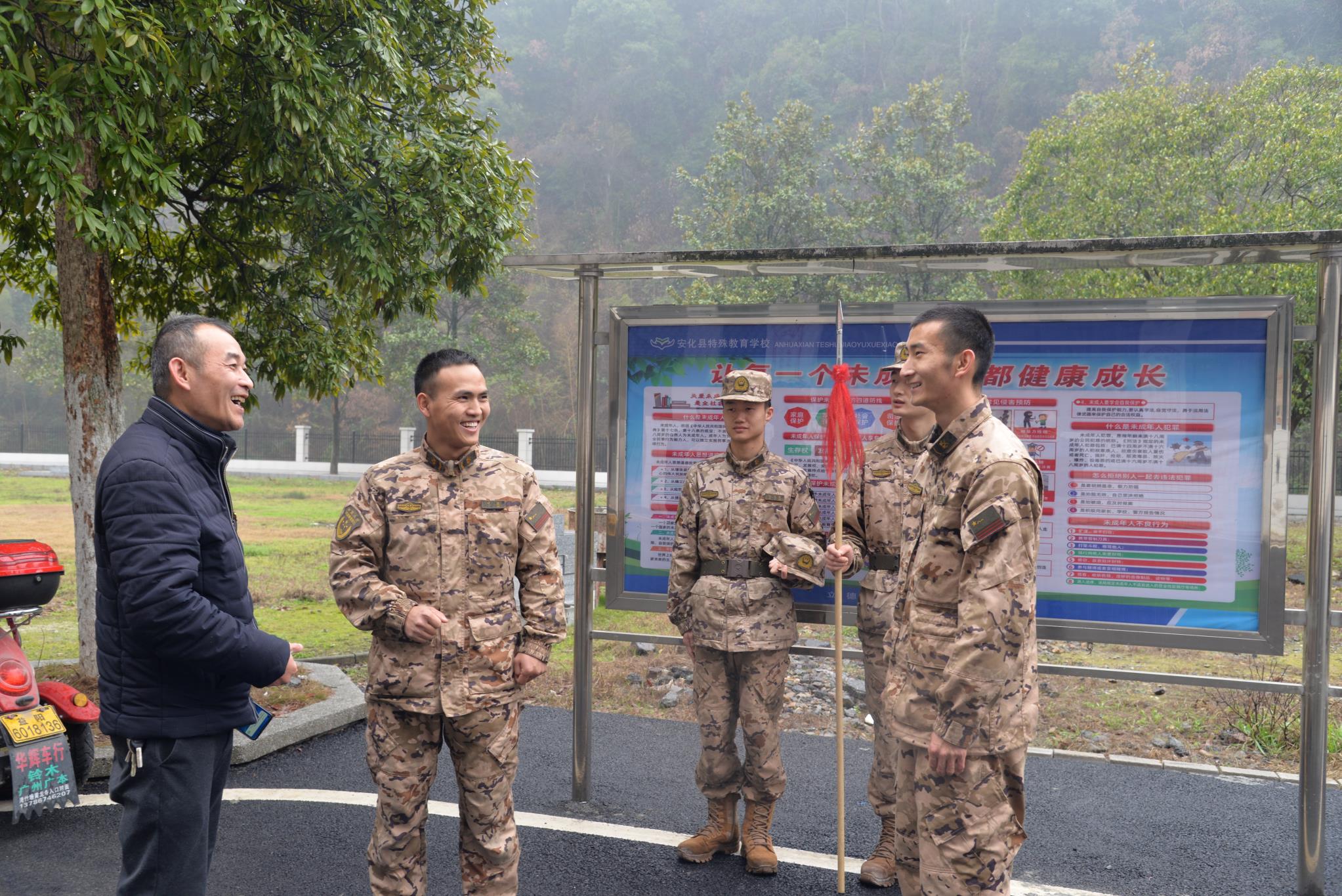 本网讯 “我的愿望是,长大成为一名军人……”在上语文课时,小豪(化名)认真地写下心愿。这个心愿,与武警安化支队到安化特校活动分不开。 3月3日上午,武警安化支队到该校,给学生们捐赠了面粉与稻米,并鼓励他们勇敢面对生活。武警官兵为孩子们表演了擒敌拳术与枪术。挺拔帅气的身姿,威武有力的擒敌动作,赢得全场热烈的掌声。不少孩子挤到操场边,跟着比画动作,气氛十分活跃。 “他们这群孩子有人爱、有人疼,感受到了家庭之外的爱。而且,这么多社会爱心人士来校关怀他们,给他们打开了很多与社会沟通的渠道,拓宽了他们的视野。我都羡慕这群孩子了!“安化县特殊教育学校负责人感慨。