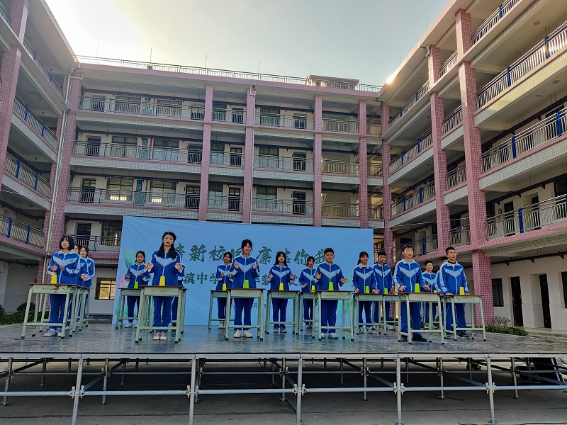本网讯 3月5日下午,烟溪镇中学全体师生齐聚操场举行“清新校园,廉洁你我”2023年新春文艺汇演,家委会成员受邀观看汇演。 学校党支部书记、副校长刘开颜致辞,他代表学校领导班子向全校师生致以新春的问候和美好的祝福。刘开颜回顾了学校2022年各项工作取得的成绩,表示在2023年,学校将全面贯彻落实党的二十大精神,齐心协力,团结奋斗,争取学校各项工作再上新台阶。 文艺汇演在教师团支部表演的《大梦想家》中拉开序幕,各班都献上了精彩的节目,以小品表演、歌舞、朗诵、走秀等多种形式,生动展现烟中学子学有所为、学有所乐的精神风貌。精彩的演出异彩纷呈,高潮迭起,掌声和欢呼声不绝于耳,全体师生一起沉醉其中,尽情享受着这场盛宴。 刘开颜表示,本次新春文艺汇演为学校营造了浓郁的校园文化氛围,充分展示了学生才艺风采和青春活力,更表达了全校师生喜迎新春的美好心声,为学校建设清廉学校奠定了良好的基础。