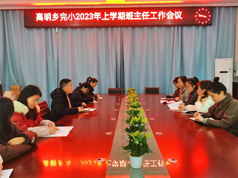 本网讯 3月2日下午,高明乡完小在学校会议室召开新学期第一次班主任工作会议,学校行政和全体班主任参加会议。 会议上,校长彭晓勇强调了班主任工作的重要性,并对新学期班主任工作提出了新要求,希望每一位班主任老师作为学生健康成长的引路人,将班级管理、学生常规教育、家校沟通等方面工作落实到位。政教主任吴移秋对班主任近段工作进行了部署,重点强调了安全工作的落实,养成教育,教育实践相辅相成,学生的思想教育是现阶段的当务之急。教导主任何海容介绍"抓细节""促管理""保安全”的班级管理方法,要求班主任们把握好重点工作,清楚班主任的工作职责,她希望学校11个班级能拧成一股绳,扎扎实实地让孩子们能做到:听好课,写好字,走好路,交好友,吃好饭好。 优秀班主任刘飞、喻佳圆做典型发言,将行之有效的班级管理经验毫无保留分享给大家。