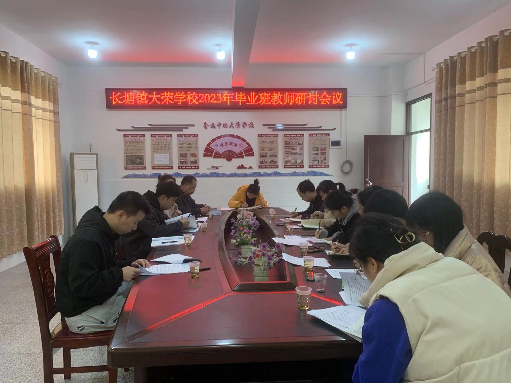 本网讯 3月1日,长塘镇大荣学校教务处精心组织以“锐意进取,提质增效”为主题的2023届毕业班教师研讨会。 研讨会上,毕业班班主任就班级学情、班级管理、学生思想动态等方面分析学生情况。各科任教师用具体、详实的数据分析了所教学科教学现状,提出了教学中所遇到的实际困难。行政就老师们提出的问题作指导性建议,凝心聚力,薪火相传,毫无保留的分享自己的好方法、新思考。 教务处主任肖丽针对存在的问题,对如何凝聚合力,推动毕业班教育教学在减负中实现新提质,精准提出了今后的教学工作方向和应对策略。并再次强调,毕业班教师要落实好“十字”方针:备课要“深”,上课要“实”,作业要“精”,教法要“活”,手段要“新”,活动要“勤”,考核要“严”,辅导要“细”,负担要“轻”,质量要“高”。 校长刘娇高度肯定毕业班教师团队,称赞毕业班师资强、能力佳,是一支团结奋进的队伍,对本届毕业班师生充满信心并表达殷殷期望。要求全体毕业班老师强意识、浓氛围、优方法,向着更高的目标迈进。 大荣学校毕业班教师刻苦钻研,基于“双减”政策,创新与改进原有教学方法,制定有效可行的整改措施,全力以赴抓好新学期的教学工作,力争提质增效,勇创辉煌!