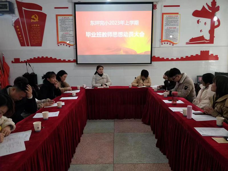 本网讯 心中有方向,脚下有力量。2月27日中午,东坪镇完小2023年上学期毕业班教师思想动员大会在党建室召开,该校全体行政和六年级全体教师共同参加。会议由该校教科室主任陈加革主持。 该校教务主任蒋丽光通报了六年级各班各科期末考试成绩,并进行了具体成绩分析,给今后的工作指引了前进努力的方向。分管教学工作的党支部副书记林中爽全面细致地对该校六年级统考科目面临形势、今年备考思路和应对措施进行了具体明确的指示,她希望大家认真领会,树立必胜信心,认真全力备考。各学科教师代表还依次进行了表态发言。 该校校长陈秀丽对老师们给予了厚望,她指出:全体行政及毕业班教师要认清形势,统一思想,坚定目标,全力以赴,创造佳绩,续写辉煌! 风好正扬帆,奋斗正当时。此次毕业班教师动员大会的召开,进一步坚定了该校六年级老师抓好毕业班教育教学质量的信心和决心,鼓舞了大家的工作热情,明确了后期的奋斗目标,为该校全面提高教育教学质量吹响了号角!