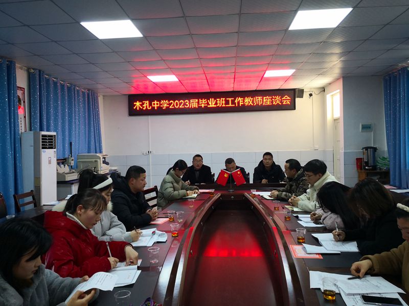 本网讯 2月24日下午,木孔中学教导处组织召开2023届毕业班教师座谈会。 七位毕业班班主任依次发言,对自己班上的学情进行详细的介绍。内容涉及班级整体情况,优生、潜能生的分布,厌学、偏科及家长态度等等,面面俱到,清晰明白。教导处对八、九年级整体情况进行了分析,指出九年级来势可喜,八年级进步空间大,明确了2023届中考综合排名目标及升重点高中的人数目标,确定了“正学风”“抓课堂”“提效率”的教学举措。 校长刘辉对上届毕业班和“三考”情况进行了总结,为获奖教师颁发了奖状,并对本届毕业班工作提出了要求。要求行政人员分班蹲点,协助班主任管理班级,各部门齐心协力,为毕业班保驾护航。 大福镇中心校李最指出,本次会议剖析了学情,展望了目标,明确了举措,统一了思想,凝聚了力量,但后期工作任重道远,大家要有坚不可摧的定力,建立“四清单一机制”确保毕业班工作的顺利开展。