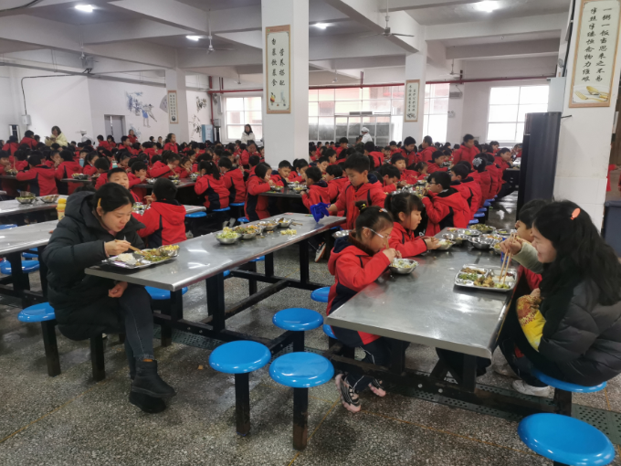 本网讯 “今天的饭菜合胃口吗?”“老师,你看,我的碗里有玉米炒火腿,这是我最爱吃的”……2月24日,东坪镇城南完小食堂近3000名师生共进午餐时温馨的一幕。 据悉,为呵护学生“舌尖上的安全”,提高食堂饭菜质量和服务水平,该校长期实行班主任陪餐制。每到午餐时间,学校教职员工都会打一份与学生一样的饭菜,与学生坐在一起同食同餐。在用餐期间,教师会不时地询问学生的用餐情况,广泛征求学生的意见和建议。此举不仅增进了感情,也确保了学生用餐安全有序并养成良好的用餐习惯,进一步推进“光盘行动”。 一顿简单的午餐,除了给孩子们一份健康、一份营养,更因为有了彼此的陪餐,让食物里多了一份安全、快乐和温暖。