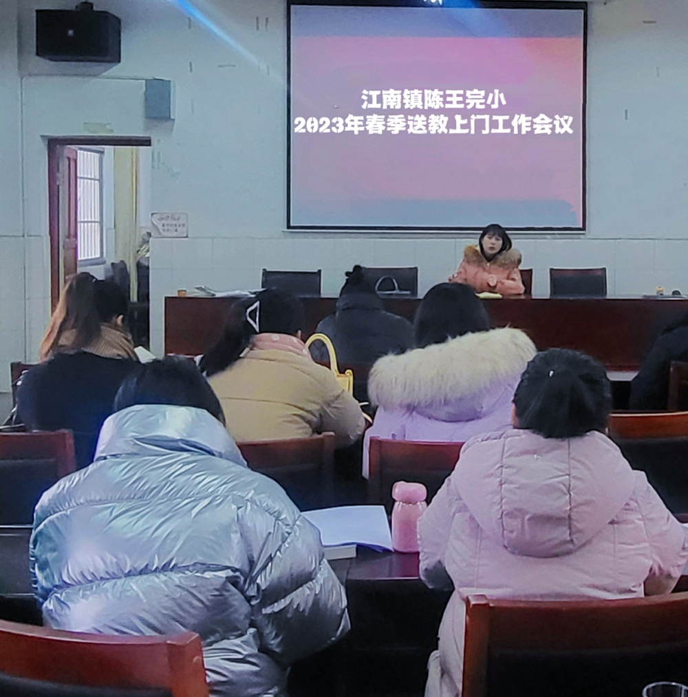 本网讯 2月23日下午,江南镇陈王完小组织召开2023年春季送教上门工作会议,学校班子成员及送教教师参加会议。 会上,曹胜姣作送教经验分享,她以“爱”为主题,详细介绍了自己送教过程中面对残疾儿童在文化知识教育、生活自理能力培养和行为习惯养成等方面做出的努力。 教导主任王松桥对2022年秋季学校送教上门工作进行了系统性总结,在充分肯定送教教师辛勤付出和家长满意度日益提高的同时,又指出了工作过程中出现的问题,如沟通协作问题、过程性材料书写问题等等。随后对本学期送教工作进行了总体安排,并对“送教上门”的目的、任务,教学资料的准备、管理,教学用品准备等工作提出了具体的要求及纪律规范。 校长陈娜进行总结发言,她指出要高度重视“送教上门”工作,确保每个孩子都有接受教育的权利,要明确送教责任,务必将“送教上门”工作做实、做细、做出成效。