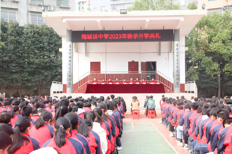 本网讯 二月春风起,万物复苏生。2月20日,梅城镇中学举行2023年春季学期开学典礼,为新的学期吹响前进的号角。 在庄严的升国旗仪式之后,全体教师在国旗下举起右手,郑重宣誓:“……把全部精力和满腔真情献给教育事业……”老师们铿锵有力的声音,彰显了他们的教育热情,体现了梅城镇中学教师的为教育事业献身的坚定决心。 校长喻选民发表了热情洋溢的讲话,他从志存高远,精忠报国;责任担当、迎难而上;锲而不舍、全力以赴等三个方面勉励全体师生:责任心是迈向成功的起点,好习惯是快乐成长的阶梯。新的学期,愿我们一起狂飙,奔向春天,奔向星辰大海,奔向更好的自己!让我们在梅城镇中学的沃土上播种希望,洒下真情,奉献智慧。 政教处主任给全体师生上了一场生动的安全教育课。他强调,安全重于泰山,安全工作是教育教学的保障,我们一定要从自身做起,从细微做起,牢记安全责任,提高自护能力,为和谐文明的校园环境而努力。 九年级李猷同学和八年级龚阳同学代表全体同学表中考决心,表达了只争朝夕、顽强拼搏、不胜不休的雄心壮志,展现了镇中学子昂扬向上的精神风貌。 副校长李德良宣读了上学期获奖的先进集体和个人,并颁发了奖项,并对他们进行了表彰。希望老师们以优秀教师为榜样,团结奋进,创新进取;也期望同学们再接再厉,刻苦学习,自强不息,争当新时代的好少年。 乘风破浪正扬帆,花开逐梦向未来。新学期,新起点,新挑战,新希望,梅城镇中学全体师生在新的一年里,将满怀信心,扬帆启航,用青春的力量书写崭新的篇章!