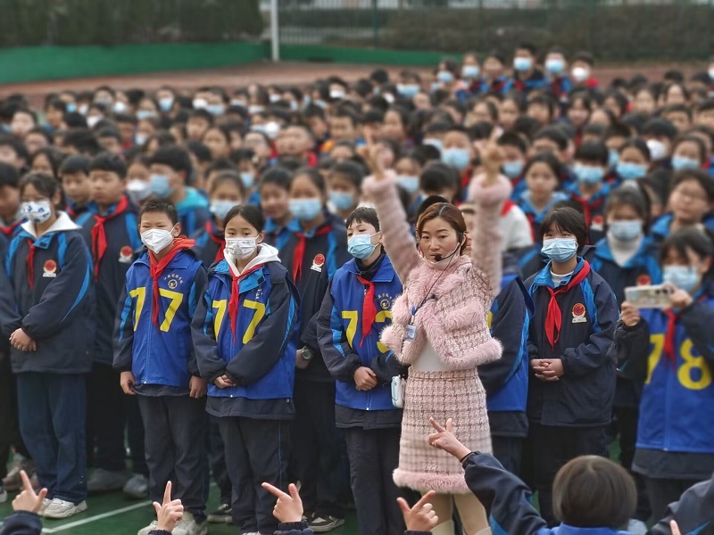 本网讯 2月20日上午,阳光明媚,春回大地。安化县江英学校小学部以“筑梦新学期,‘兔’进新征程”为主题,在大操场举行了2023年春季新学期首次升旗仪式。学校领导、老师和1100多名学生参加此次活动。 庄严的升旗仪式在国歌声中拉开序幕,尽管天气依旧寒冷,但师生们依然着装整齐,精神格外振奋。在全体师生的注目下,国旗护卫队踏着整齐划一的步伐护送五星红旗进场。在雄壮的国歌声中,五星红旗冉冉升起。 校长刘艳借助升旗仪式,总结了上学期所取得的各项成就,强调了本学期的中心工作和目标,希望全体学生继续养成良好的学习习惯、生活习惯和品行习惯,做一个道德行为合格的学生;希望全体教师要在工作中充满激情,关心每一位学生,认真做好教育教学工作,让每一位学生都有进步。 校领导为上学期表现突出的优秀学生、优秀教师颁发了荣誉证书和奖状,期望大家以表彰的师生为榜样,向他们学习,不折不扣完成本学期的各项任务。教师代表、学生代表发言,分别表达了做好教育教学工作及争做优秀学生的决心和态度。 五育并举开新局,‘兔’飞猛进向未来。此次开学升旗仪式既是总结,也是迎新,更是一次动员。全体教职工纷纷表示,继续做好教育教学工作,团结一心,以更加坚定的决心、更加昂扬的斗志、更加实干的精神投入2023年新学期的工作与学习之中。
