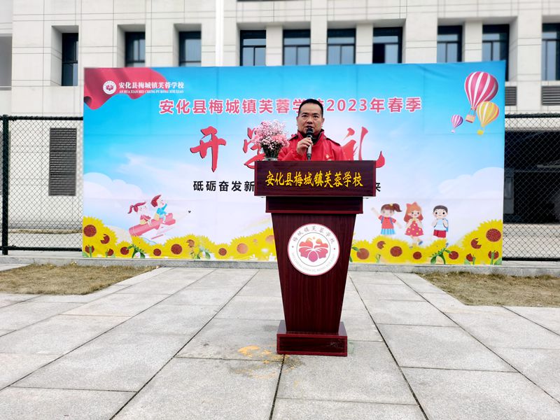 本网讯 一兔当先春来报,万兔奔腾威武耀。2月17日下午,梅城镇芙蓉学校全体师生及家委代表在操场集结,举行2023年春季开学典礼。 校长王吉阶在新学期的致辞中希望芙蓉学子听党话、跟党走,承担起民族复兴之重任;从小立志,勤奋学习,积极锻炼,胸怀报国之志,成长为祖国需要的人才。
