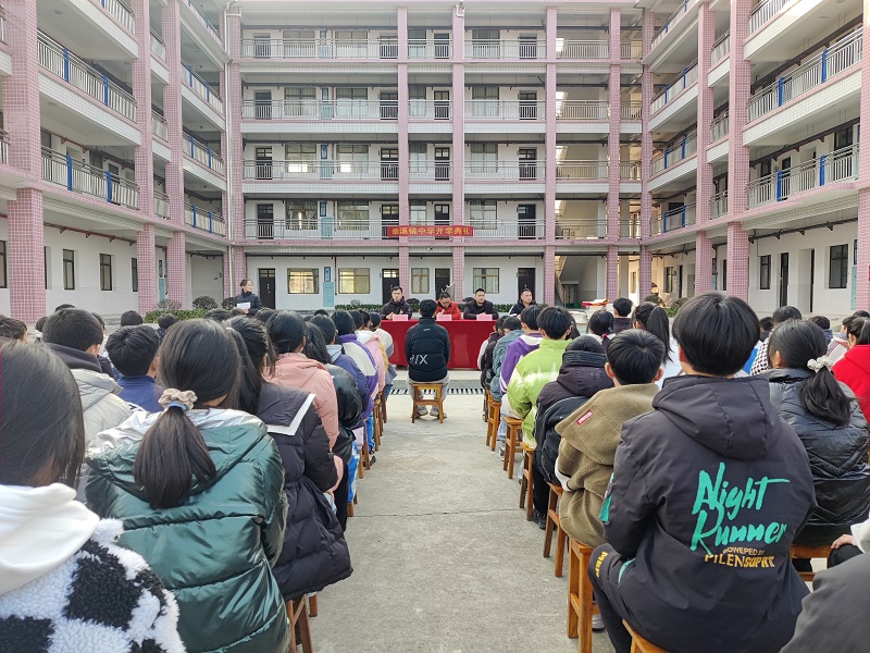 本网讯 2月15日下午,烟溪镇中学全体师生欢聚在操场,举行2023年春季开学典礼。 在庄严的升旗仪式后,全体师生面对国旗庄严宣誓,表示新学期将继续奋斗,再创佳绩。教师代表刘晨玮发言,她对同学们提出了殷切的希望,希望同学们培养一个好习惯、铸造一种优秀品格。各年级学生代表上台发言,表达了对老师的感恩之情,与在座的同学分享了自己的学习经验,期望与同学们一起用实力支撑梦想,再创烟中辉煌。 教导主任刘振作2022年教育教学工作总结,带着教育教学成果丰收的喜悦,他向全校师生送上了温馨的祝福,提出了新学期的希望。 校长杨洋作开学工作报告,他叮嘱同学们要做一个胸怀祖国、胸怀志向、牢记安全的人,愿全体同学好学、会学、乐学,愿全体老师爱岗、爱生、爱校,一起书写新的篇章,共同创造烟中新的辉煌。 大会最后,刘振宣读了获奖学生与班级名单,学校行政为获奖学生与班级颁发奖状和奖品,鼓励孩子们向榜样学习,百尺竿头,更进一步。