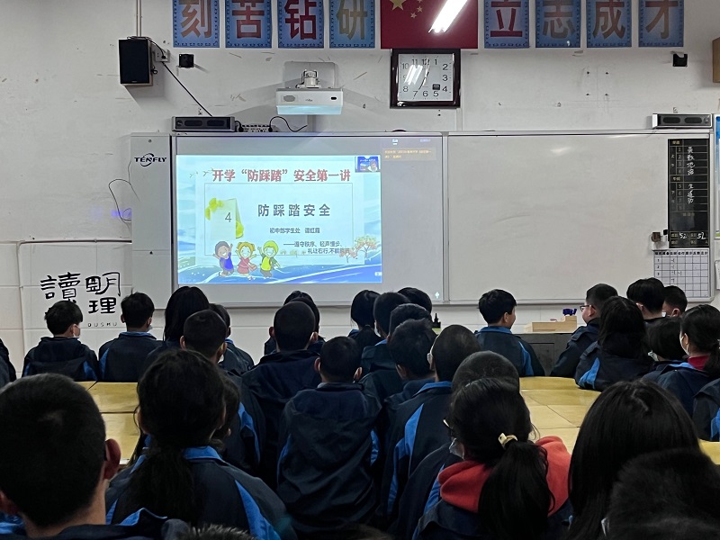 本网讯 2月8日晚,由安化县江英学校初中部组织开展的2023年春季“开学安全第一课”正在有声有色地进行。全校33个班、1600多名师生参加了此次主题教育,活动由学校安全工作领导小组、学生处和团委共同组织进行。 据学校安全工作专干、学生处主任谭红霞介绍,新学期的第一堂德育课就是围绕防性侵、防欺凌、防诈骗、防溺水、防踩踏和防毒品等话题开展,还有当下如何安全文明乘坐电梯?哪些食品不安全?中小学生如何防范新型毒品侵害?如何识别“金融诈骗”小把戏?每天应该食用多少克盐?“开学安全教育第一课”聚焦了当下最为热点的安全问题,这些都是开学季最为重要的工作,只有将安全知识带入课堂,才能护航中小学生安全健康成长。 “电梯是设备,不是玩具!”同学们通过电梯运行原理科普,明白了平时搭乘电梯时容易忽视的安全隐患。更懂得了被困电梯时,应保持镇静,向外求助并等待救援,扒门盲目自救,可能使处境更加危险。 “民以食为天啊!”。同学们从健康饮食和食品安全两个维度,懂得了均衡饮食的重要性,以及需要注意的饮食卫生问题。 “普通的橡皮、笔帽、文具盒也会带来危险!”同学们通过视频了解到,千万不要购买或使用“三无产品”…… 校园安全无小事,开学教育正是时。筑牢校园安全,需要学校、家长、社会和学生自身多方面的共同努力。只有永远把安全放在第一位,才能守护祖国花朵的健康成长,才能共创美好的未来。