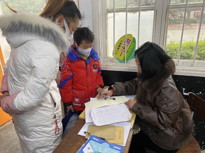 教室里,班主任老师正在为学生报名、检查寒假作业、分发教材,耐心地与学生交流。为帮助孩子们调节心理、身体、学习状态,尽快融入校园生活,各班积极开展收心教育。