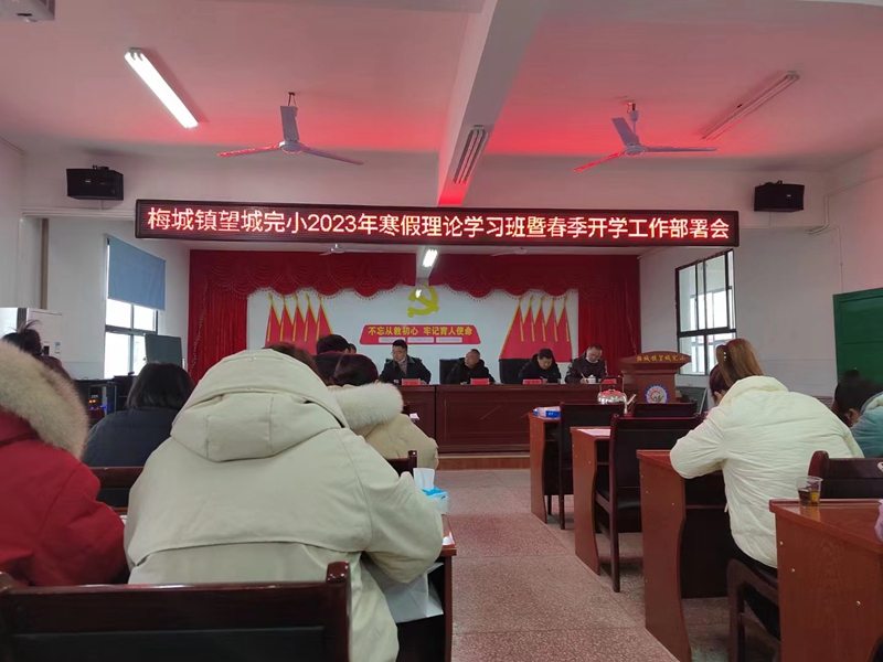 本网讯 2月3日,为期三天的梅城镇望城完小2023年寒假教师师德师风理论学习班暨春季开学工作部署会在该校会议室拉开序幕,中心学校联点领导杨吉初,该校全体教职员工参加会议。 副校长郭世佳作了师德师风专题报告,组织学习了上级有关文件和师德师风案例;教导主任董鸿亮作了题为《赓续传统 凝心聚力 踔厉奋发 促进望城教育持续发展》的教育教学主题报告。他指出,全校师生在成绩面前总结经验,寻找规律,顽强拼搏,再创辉煌。同时安排了新学期老师们的工作任务。总务主任龚轶平安排了春季开学收费和后勤工作,他强调,必须严格执行上级收费文件,所有收费严格执行家长自愿原则。政教主任吴琪琦就安全工作和新冠感染实行“乙类乙管”政策后的疫情常态化防控及春季传染病防控进行了专题培训。校长李兴家作了题为《扬帆启航正当时 砥砺奋进谱新篇》的开学工作报告,简要回顾了2022年工作,指出存在的不足。从师德建设、常规工作、教学质量、项目建设等方面安排了新学期工作。中心学校联点领导杨吉初要求老师们不忘教育初心,从抓好日常工作、做好茶饭工夫做起,兢兢业业做好本职工作,再创望城教育辉煌。 全体教师向学校递交了师德师风、安全、控流保学等责任状。全体教师倍受鼓舞,一致认为学习班的内容充实,目标明确,纷纷表示,将为谱写望城教育的新篇章做出不懈努力。